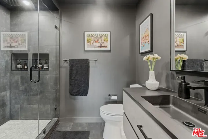 Incredible jetliner views await you in this fully renovated 2-bedroom, 2-bathroom condominium at West Hollywood’s premier address, 1230 N. Horn Avenue. From the moment you step inside, sweeping views of the city and the Downtown Los Angeles skyline greet you from every window. The living room is incredibly bright and spacious, flowing seamlessly onto an oversized private patio appointed with separate dining, grilling, and lounge areas. Opening to the living room, the expanded kitchen impresses with new stainless steel appliances including a wine refrigerator, and expanded kitchen storage encompassing the entire wall. Whether gathered at the breakfast bar or at the dining room table, every meal is destined to create lasting memories. The second bedroom(or home office) is generously sized and conveniently adjacent to the in-unit washer and dryer and the first of two designer bathrooms. The primary suite evokes the feeling of a boutique hotel throughout, from the generously proportioned bedroom with commanding DTLA views, to the walk-through closet curated and finished with the precision of a high-end boutique. Allowing maximum storage without sacrificing aesthetic. The primary bathroom is a true showpiece, featuring dual sinks, a backlit mirror, and a tiled shower straight out of a design magazine. Additional highlights include a Nest Thermostat, central AC and heat, and two gated parking spaces. The entertaining also extends well beyond your front door. The building features a crystal clear pool, spa, rooftop patio, game room with foosball and a pool table, commercial laundry, onsite property management, large amount of guest parking, a secure mail room, and a dog run currently undergoing renovation, and finally a recently renovated lobby leaving a lasting first impression on your guests. HOA dues cover all of these exceptional amenities plus all utilities with the exception of electric and gas.