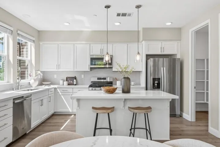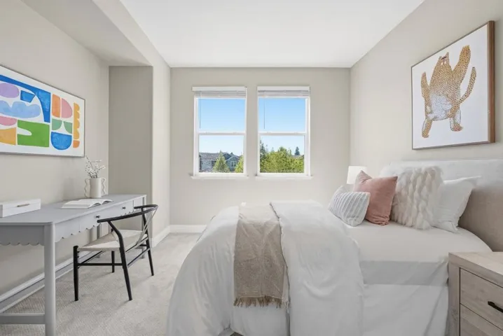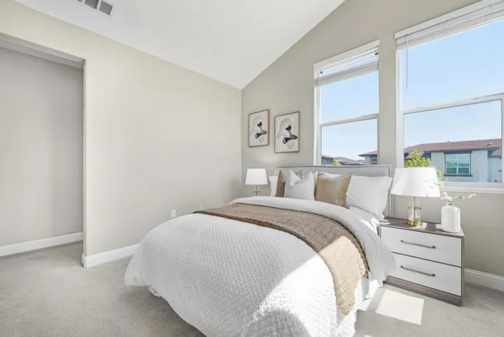 Ideally positioned within the highly sought-after The Vale, this rare End-Unit townhome enjoys one of the communitys most desirable settings, with exceptional privacy and no direct neighbors looking into the windows. One of the few truly special homes in the community, it features a spacious south-facing balcony overlooking the central community park and faces the central lawn with picturesque green views and beautifully landscaped planting beds, creating a serene park-like ambiance right outside your door. The extra-large garage offers ample space for parking, storage, or even a home gym. Completing the appeal is its unbeatable location in a quiet, well-maintained community just minutes from major tech campuses including Apple, Nvidia, Google, and LinkedIn, with convenient access to Hwy 101, Central Expressway, and Lawrence Expressway.