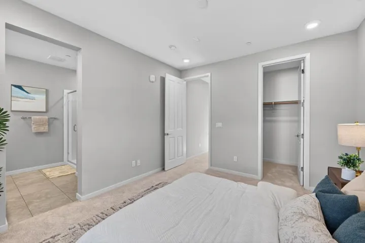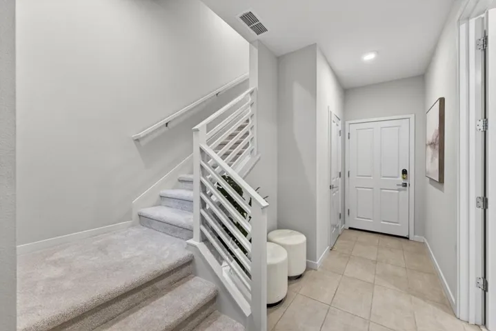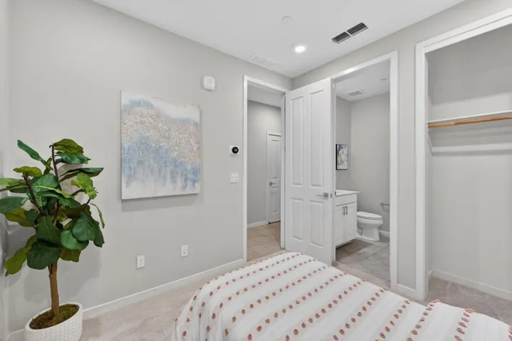 Welcome to this beautiful townhome in the sought-after the Vale community of Sunnyvale, featuring 3 beds and 3.5 baths. Offers serene surroundings with abundant natural light throughout.with a ground-level suite offering large windows, a walk-in closet, and a bath with stall shower-ideal for extended family. The second level showcases an open floor plan with a spacious living room, dining area, and kitchen, enhanced by abundant natural light from large windows. Indulge in outdoor living on a private balcony, as abundant natural light floods the interior, creating an inviting ambiance. The modern kitchen features a large island quartz countertops, stylish tile backsplash, stainless steel appliances, and ample white cabinetry. A laundry room and half bath on this level add convenience. The third level with new carpet throughout hosts the two en suite with high ceilings, bright windows, and an Elfa walk-in closet. The en-suite bath includes a double vanity with quartz countertops. Additional highlights include an attached two-car garage. The Vale community offers parks, playgrounds, and a clubhouse. Conveniently located near major tech companies, restaurants, shopping, groceries, and with easy access to Highways 101, 237, and Lawrence Exwy. Do not miss this great opportunity!