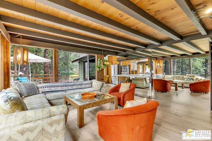 Welcome to the Treehouse! A spacious wraparound deck surrounds the living room, offering the perfect balance of sun and shade, with an easement on one side enhancing the sense of seclusion.This inviting home features a main-level primary suite, along with a bathroom downstairs. The cozy wood-burning fireplace anchors the living space, while mirrored walls reflect the natural beauty of the surrounding trees, bringing the outdoors in. Upstairs, you’ll find a charming loft-style bedroom complete with its own bathroom and walk-in closet ideal for guests or a private retreat. The bright and sunny eat-in kitchen, paired with seamless indoor-outdoor flow to the deck, creates an ideal setting for relaxing or entertaining. With new flooring on the main level and being sold fully furnished, this sweet home is move-in ready just bring your vision and start making happy memories.