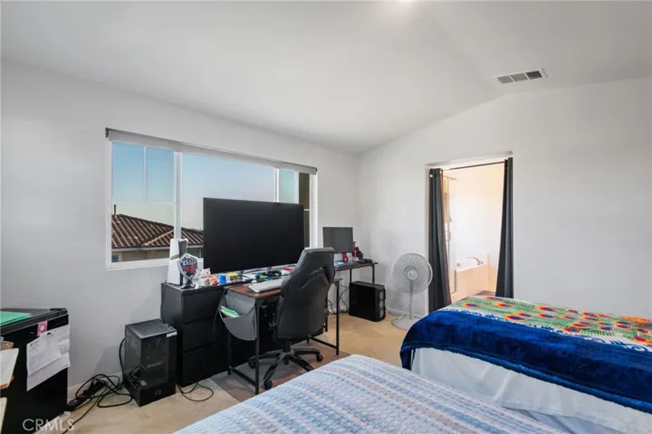 Welcome to this bright and thoughtfully designed home offering modern features and a functional layout. The open-concept main level seamlessly connects the kitchen, living, and dining areas—perfect for both everyday living and entertaining. Tile flooring runs throughout the main level, while plush carpeting adds comfort upstairs. The kitchen and living spaces are filled with natural light and feature a sliding glass door that opens to the backyard—currently a blank canvas ready for your personal touch. Additional main-level highlights include direct access to the attached 2-car garage. This home is equipped with valuable upgrades including including owned solar, a Tesla backup battery, reverse osmosis system, and water softener—providing efficiency, convenience, and peace of mind. Upstairs, a versatile loft has been enclosed with a door for added privacy, making it ideal as a home office, media room, or additional living space. The spacious primary suite offers a walk-in closet and an en-suite bathroom complete with dual sinks, a soaking tub, and a separate shower. Three additional bedrooms share a full bathroom, and a convenient upstairs laundry room completes the second level. This home combines comfort, flexibility, and modern amenities in a desirable layout ready to fit your lifestyle.
