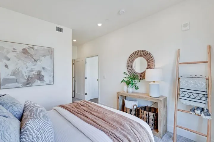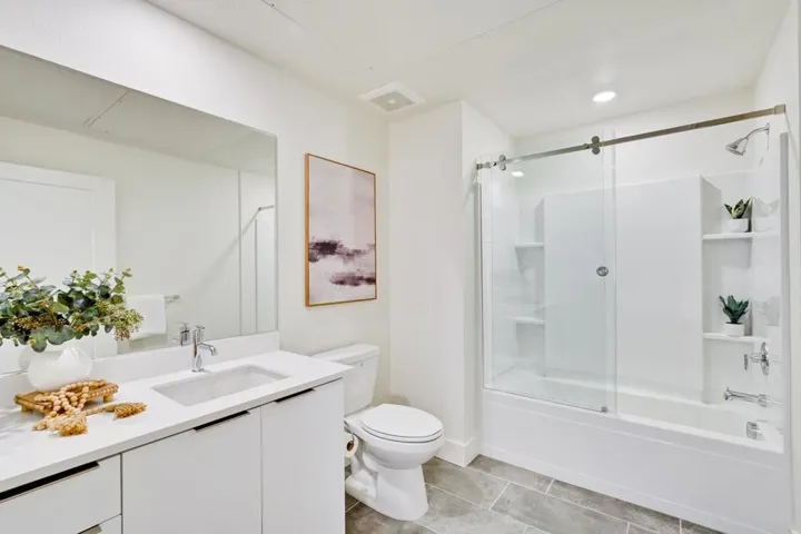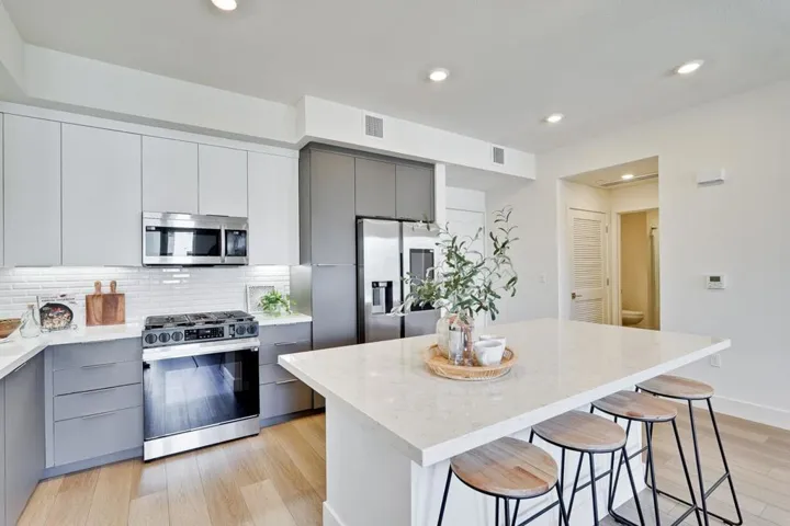 Rare corner unit with exceptional privacy in Fremont’s sought-after Innovation District! Welcome to 3698 Vision Common unit 221, a beautifully maintained 2-bedroom, 2-bath home offering approx. 1,049 sq. ft. of thoughtfully designed living space. Ideally positioned with no homes directly in front or on the side, this home enjoys open views and abundant natural light. Located on the first floor with elevator access, it blends comfort, privacy, and modern living. The open-concept layout features a bright living and dining area. At the same time, the kitchen is equipped with sleek cabinetry, stone countertops, stainless steel appliances, and ample prep space, ideal for everyday living and entertaining. The spacious primary suite includes a walk-in closet and en-suite bath. A second bedroom and full bath offer flexibility for guests, office, or family needs. Additional highlights include in-unit laundry, central A/C and heating, secure entry, and premium upgrades, including a $40K lot premium and $20K for an additional assigned garage space. Enjoy resort-style amenities: gym, lounge, BBQ area, outdoor spaces, and more. Conveniently located near Warm Springs BART, 680/880, tech hubs, shopping, and dining. Assigned to top-rated Fremont Unified District schools.