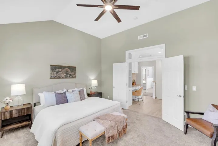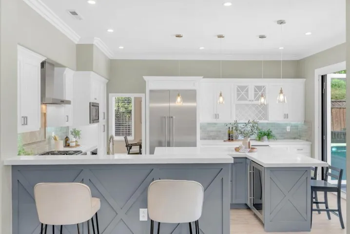Stunning fully remodeled entertainer’s dream home located at the end of a private cul-de-sac, one house from an expansive neighborhood park. Soaring ceilings and abundant natural light welcome you into an elegant living room. Grand formal dining room with a beautiful chandelier, and a farmhouse-inspired barn door leading to the Chef’s Kitchen. Full Thermador suite with six-burner gas range, range hood, dishwasher and built-in refrigerator. Merano quartz island and countertops, wine and bar station with two beverage refrigerators, white shaker cabinets, subway tile backsplash with herringbone accent, and bifold cantina doors to the backyard. The entertainer’s dream backyard features a custom pavilion with open beam ceilings, built-in kitchen, sparkling pool and spa, basketball hoop, putting green, turf side yard with lighting, and amazing Japanese maple. Large downstairs guest bedroom with contemporary remodeled bath. Upstairs landing homework nook that leads to the primary suite with vaulted ceilings, dual walk-in closets, jetted tub, frameless shower and quartz countertops with dual sinks. 3 additional bedrooms, laundry room, whole house fan, home automation and shed. 3 incredible neighborhood parks in one of Morgan Hill’s most sought after neighborhoods. This home has it all!