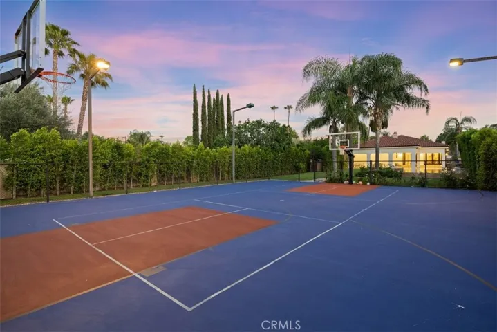 In the heart of Walnut Acres, this gated compound presents a rare opportunity to own a stunning remodeled single-story estate set on a sprawling 18,000+ sq ft flat lot. Boasting 5 bedrooms—4 of them ensuite—and 5.5 bathrooms, the home blends luxury, comfort, and privacy with its own lighted sports/ pickleball court for the ultimate at-home recreation. Designed with sophistication in mind, the open-concept floor plan is filled with natural light and spans over 3,400 square feet. The residence features two expansive family rooms—one centered around a cozy fireplace, and another seamlessly connected to the kitchen, highlighted by elevated ceilings, a dining area, and two sets of double doors that open to a large covered patio with soaring ceilings and views of the lush backyard. Embracing the Southern California lifestyle, the outdoor space is a true retreat, complete with a designer pool and spa, an oversized fire pit, and a fully lit sports/ pickleball court—creating a private, resort-like experience. Ideally located near premier destinations including The Village, Topanga Social, Topanga Mall, and the LA Rams training facilities, and surrounded by abundant shopping and award-winning schools, this exceptional property offers the perfect blend of luxury living, convenience, and lifestyle.
