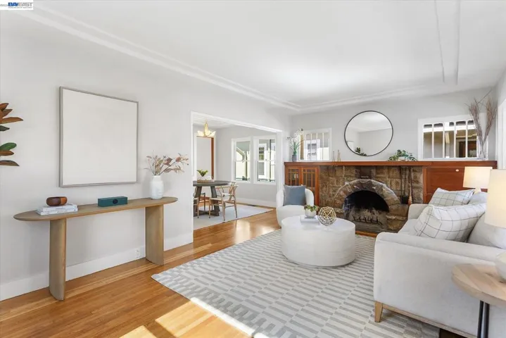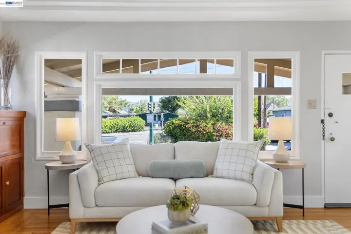 Charming Craftsman bungalow on Alameda’s coveted East End, featuring a spacious and inviting front porch that encourages you to slow down and stay awhile. This 2-bedroom, 1-bath home offers 891 square feet of thoughtfully updated living space, blending timeless character with modern comfort.Refinished hardwood floors, fresh interior paint, and classic built-ins surrounding the fireplace highlight the home’s original charm. The dining room showcases beautiful original cabinetry and an Art Deco chandelier, adding warmth and character.The light-filled kitchen is bright and functional, especially for a home of this era, with a well-designed layout, brand-new dishwasher and microwave hood, and direct access to the backyard through French doors for seamless indoor-outdoor living. Modern upgrades include air conditioning, an upgraded furnace, and a tankless water heater.The sunny second bedroom features a full wall of windows overlooking the backyard, while the spacious primary bedroom includes a walk-in closet. A vintage tiled bathroom and stackable washer and dryer add both charm and convenience. Outside, enjoy a south-facing backyard with a private deck, mature fig tree, and generous space for entertaining or gardening, along with a storage shed. This home offers the best of Alameda!