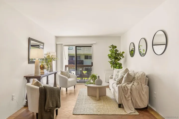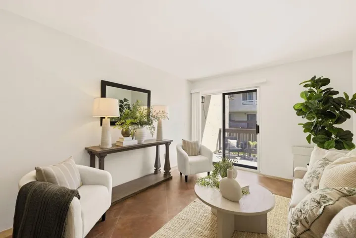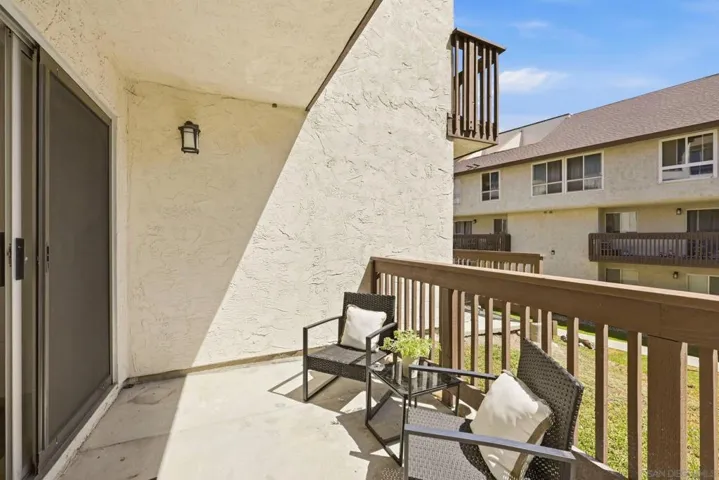 Welcome to this beautifully refreshed ground floor retreat in the sought after Mission Verde community. This stylish 1 bedroom, 1 bathroom residence features sleek, concrete flooring throughout the main living areas and tile in the bathroom. The kitchen comes fully equipped with a microwave, fridge, and stove/oven, perfectly situated for both daily living and entertaining. Accessibility is a breeze with elevator access from the parking area directly to the first floor, though the secure building offers multiple entry points for your convenience. The home features a patio with direct access to the open outdoor area and is located just a very short stroll from the community pool and spa. This unit is a storage lover’s dream, featuring a dedicated storage room and a reserved parking spot. Residents at Mission Verde enjoy premium amenities including tennis and basketball courts, five BBQ areas, and a secure building with fob access and an elevator. This property offers the perfect blend of comfort and convenience in the heart of San Diego.