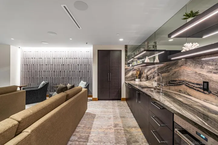 Experience a refined perspective on luxury living in this exceptional residence at Pacific Gate. Designed with a rare sense of arrival in a condo setting, this sought-after floor plan welcomes you through a true foyer entry, offering both privacy and a gracious transition into the home’s light-filled interiors. The main living space is defined by Pacific Gate’s signature curved glass wall, where sweeping city views and dazzling evening lights create a dynamic backdrop. A private, covered terrace extends seamlessly from the living room, creating an effortless indoor-outdoor experience above the vibrant downtown skyline. At the heart of the home, a sculptural Caesarstone waterfall-edge island anchors the chef’s kitchen, complemented by a clean, modern palette and sleek contemporary cabinetry. Integrated smart home automation system enhances daily living, allowing you to control lighting, climate, and more in each room from an in-home tablet or your mobile device. The primary suite captures views of the bay, Coronado Bridge, and Coronado, while the spa-inspired bath features a soaking tub, glass-enclosed shower, dual vanity with LED-lit anti-fog mirrors, and an integrated TV. Residents of Pacific Gate enjoy an unmatched suite of resort-caliber amenities, including a private yacht share, luxury car fleet, 24-hour concierge and security, resort-style pool terrace, state-of-the art fitness center, screening room, guest suite, and a celebrity chef-owned restaurant on site. Pacific Gate places you moments from the Marina District, Seaport Village, fine dinning and shopping. The first all-glass Super Prime residential tower in San Diego offers an unprecedented waterfront lifestyle with sky-high amenities and picture-postcard views. Directly overlooking the waterfront, the 41-story tower contains an exclusive offering of homes designed by Hirsch Bedner Associates. Renowned New York-based architectural firm Kohn Pedersen Fox (KPF) created a landmark that reimaged the San Diego skyline. The custom-engineered glass walls dynamically reflect the hues of the sky and the Pacific Ocean. Pacific Gate has evolved the San Diego skyline and represents the future of the city. The building is comprised of two-nested curved glass towers that rise as a single column from a three-story ground floor retail podium on the north and west sides of the tower. Because of the building’s curves and exterior glass, Pacific Gate offers a striking viewing experience from every vantage point. Residents arrive home to a beautifully landscaped motor court with a private luxury car fleet, which leads to a double-height lobby with a 24-hour concierge and porter services. Two levels of amenities boast a residents lounge ideal for events and everyday use, the fitness center contains an extensive range of state-of-the-art equipment. Adjacent to the fitness center is the steam and sauna retreats that open up to the fourth-floor pool terrace fitted with poolside cabanas and glass surround.