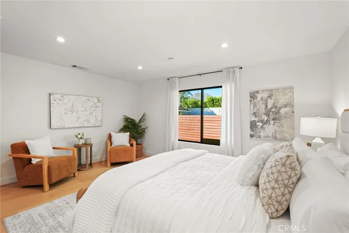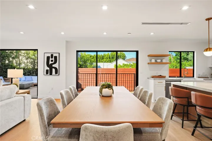Situated on a quiet tree-lined street in one of Encino’s most coveted neighborhoods, this turnkey single-story home has been beautifully remodeled and completely reimagined. Natural light floods the open-concept floor plan, highlighting the wide-plank European oak hardwood floors and lofty ceilings found throughout. At the heart of the home, the designer chef’s kitchen features a stunning 8 foot wide Taj Mahal island, bespoke cabinetry and top-of-the-line Bosch appliances. Thoughtfully designed for both everyday living and effortless entertaining, the kitchen flows seamlessly into the spacious living and dining room. A chic bar area with a beverage fridge adds an extra touch of convenience, while oversized sliding glass doors open to reveal a walk-out deck, expanding your living space outside for a seamless indoor-outdoor living experience. Mature ficus trees provide privacy to the serene backyard retreat, which is complimented by low-maintenance artificial turf. The home offers three generously sized bedrooms, highlighted by a luxurious primary suite that boasts a custom walk-in closet and spa-inspired bathroom, complete with a soaking tub, glass-enclosed rainfall shower, double vanity and smart toilet. Additional features include a stylish powder bathroom, state-of-the-art security system, Ecobee smart thermostat, high-efficiency 5-ton heat pump system, brand-new aluminum windows, a two-car garage with epoxy flooring and premium fixtures throughout. Located within the top-rated Hesby Oaks School District, this property is just moments from Ventura Boulevard’s renowned shops and restaurants, and its prime central location allows for easy access to everything the Valley and the Westside have to offer.