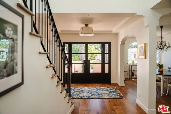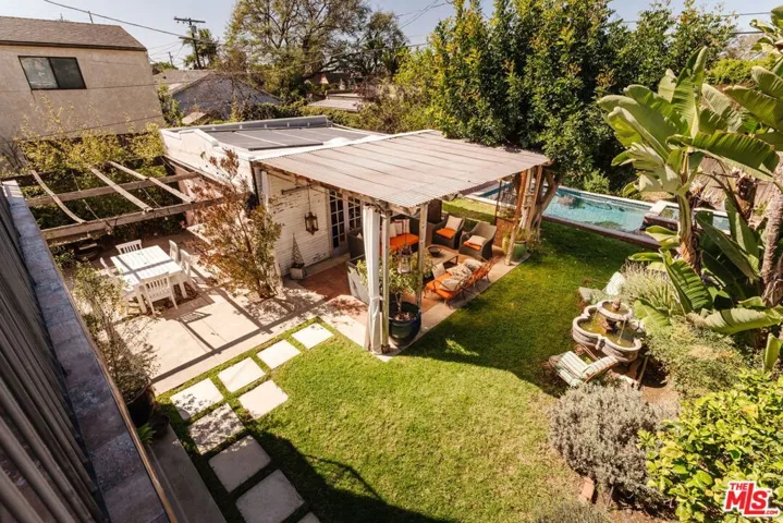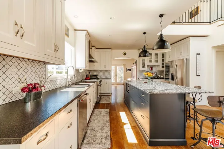 Welcome to your Oasis in the Big City a refined Spanish retreat in the heart of Faircrest Heights. Thoughtfully remodeled in 2016, this 5-bedroom, 4-bath residence offers 3,200 square feet of beautifully curated living space, blending timeless architecture with elevated modern finishes for today’s discerning buyer. From the moment you enter the front yard, the city fades away. Pavers wind through lush landscaping, guiding you to a striking glass double-door entry that introduces the designer sanctuary within. Inside, an expansive layout unfolds. The inviting living room is anchored by a statement fireplace, while the spacious dining room is perfectly suited for intimate dinners or large gatherings. At the heart of the home, the show-stopping chef’s kitchen impresses with a full suite of top-of-the-line stainless steel appliances, a wine refrigerator, custom cabinetry, and an oversized island with bar seating that invites connection and conversation. Designed for both everyday living and elevated entertaining, the space flows seamlessly and includes an adjacent dedicated laundry room. Beyond the kitchen, you’ll find a versatile study, an additional bedroom, and a generous family room (or optional 2nd primary bedroom suite) with an en-suite bath and doors that open effortlessly to the backyard creating ideal indoor-outdoor flow. A graceful, curved staircase leads upstairs to a serene retreat. The primary suite is a true sanctuary, featuring two spacious walk-in closets with custom built-ins and a luxurious bath complete with a double vanity and walk-in shower. A private balcony showcases views toward Century City, offering tranquil sunsets the perfect setting for morning coffee or an evening glass of wine. Two additional bedrooms complete the upper level. Outdoor living takes center stage, a sparkling pool integrates beautifully into the landscaped grounds, complemented by a dining terrace, lounge area, and expansive yard ideal for entertaining, stargazing, or peaceful evenings at home. Carefully rebuilt with intention, craftsmanship, and durability in mind, this exceptional residence presents a rare opportunity to enjoy sophisticated modern living while honoring the character and charm of a classic Faircrest Heights home. Don’t miss the opportunity to own this remarkable blend of prime location, architectural beauty, and top-tier amenities.