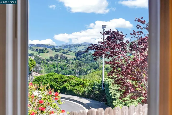 Tucked away on a quiet Cul-de-sac, this home offers a rare blend of privacy, scenery, and convenience. Enjoy breathtaking views of mountains, canyons, greenbelt, and even bay water views from the bedrooms upstairs. Nearly every window captures stunning natural surroundings, creating a peaceful and inspiring atmosphere. Set in a very private setting, this property is ideal for those who value tranquility while staying close to everything. Conveniently located with an easy commute to San Francisco (approx. 25–35 min), it offers the perfect balance between quiet living and city access. Lovingly maintained by the same owners for many years, the home features manicured front & back yards, a private backyard with a covered patio perfect for relaxing and enjoying the views. Inside, there is no carpet, only hardwood &laminate flooring throughout, freshly painted interior and exterior, dual-pane windows, new SS appliances (Dec 2025). The living room showcases beautiful high wood-beamed ceilings, while the family room with a cozy fireplace opens to the backyard, creating seamless indoor-outdoor living. Smart floor plan with many custom-built closets. Major updates include a new roof (2024) & new attic insulation (Jan 2026), enhancing energy efficiency, comfort & overall health and safety.