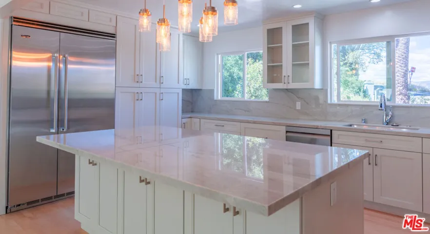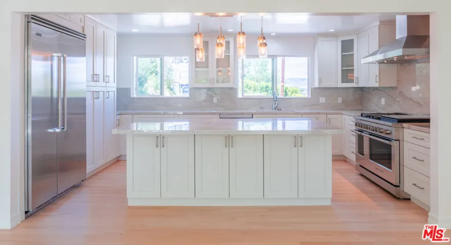 Set on a peaceful, quiet street, South of The Boulevard in the coveted Woodland Hills, this inviting home offers sweeping 360-degree mountain and valley views with an exceptional sense of privacy and calm. Thoughtfully updated throughout, the residence blends comfort and style with a brand new, beautifully remodeled kitchen appointed with premium appliances, modern black metal and frosted glass French doors, updated windows and sliding doors, fresh interior and exterior paint, and remodeled bathrooms with refined finishes. This homes open living area, decorated with a gas fireplace will keep you comfortable and safe with its newly upgraded central air, and a hardwired security system. The finished garage and upstairs addition you can use as a home office or secondary primary bedroom boasts its own walk-in closet, bathroom with dual vanity, full size shower and separate central air. As you make your way outside you’ll find newly added fruit trees, refreshed landscaping, and thoughtfully designed water-collection planter boxes that add both functionality and charm. This homes outdoor living will keep your guests entertained as they enjoy a fully remodeled pool, built-in BBQ with refrigerator and generous parking on the property along with abundant, safe street parking as well. You will not only be just a few minutes from the famous Warner Center, but close to The Village, Westfield Topanga, popular dining, shopping, and entertainment Venues alike. The home also benefits from the area’s exciting continued growth as Woodland Hills is part of the Warner Center 2035 vision for a more vibrant mixed-use hub, and Rams Village at Warner Center is planned to bring the Los Angeles Rams’ permanent headquarters and training facility along with new residential, retail, office, entertainment, and open-space elements to the neighborhood. This momentum, together with the broader transformation of the former Promenade site, continues to elevate the area’s long-term appeal and value. This Home Has Been Virtually Staged.