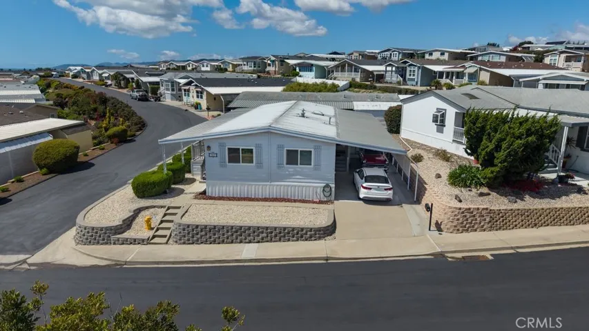 Three bedrooms offers space for an office or extra guest room. Interior has been drywalled and original windows replaced with vinyl double pane Milgard® windows. New skirting installed in March 2026 for a fresh look. Master bedroom has a view of the dunes and the master bathroom features a walk-in closet. There is an electric person/chair lift attached to the driveway staircase. Sunrise Terrace is a gated community featuring a clubhouse with a billiards room, recreation room & kitchen along with a gym, pool, golf course and tennis courts. This is a share owned park so there is no space rent.