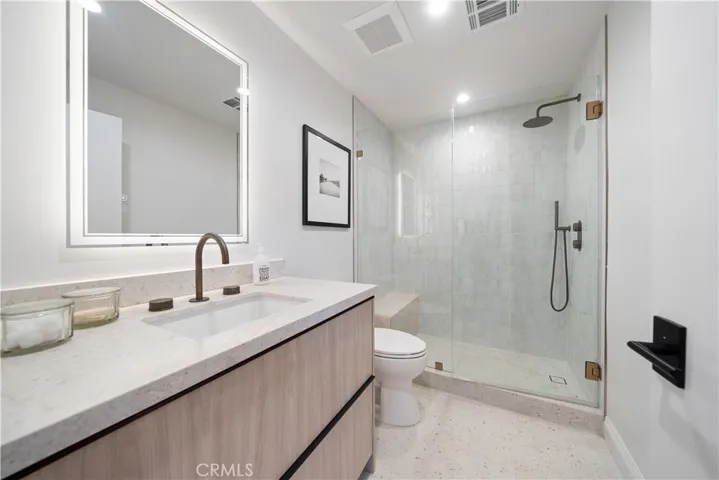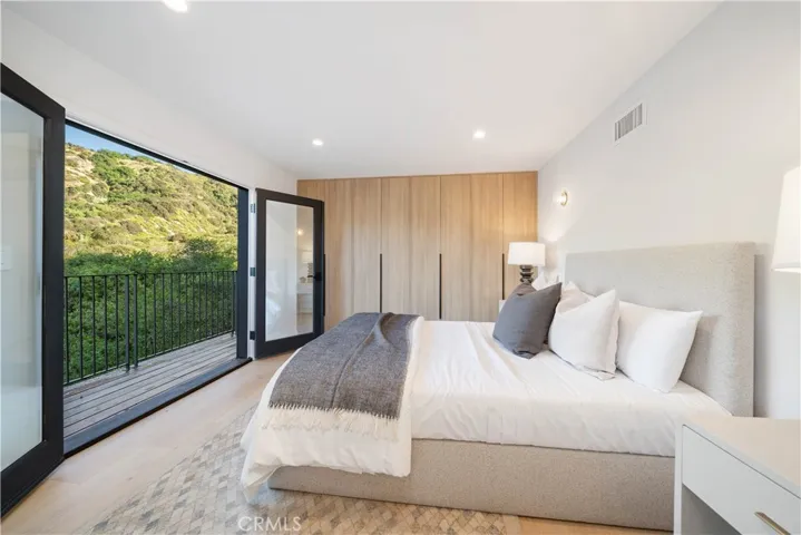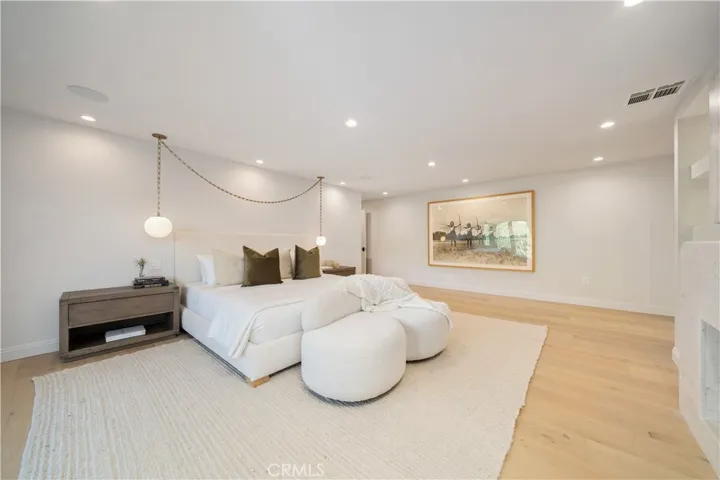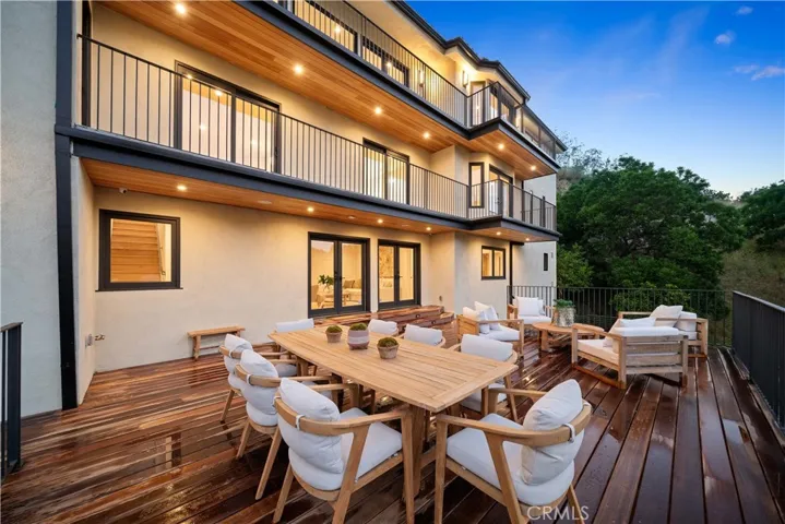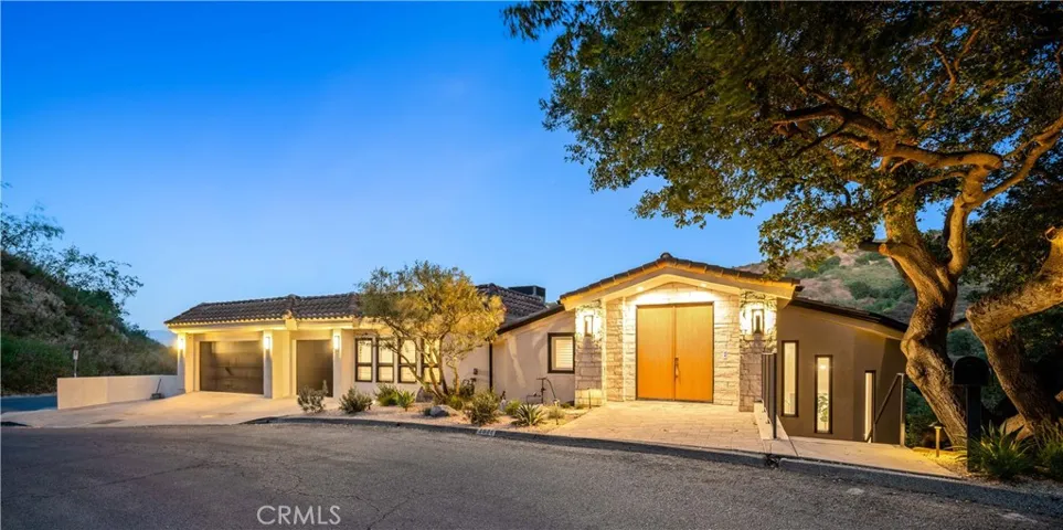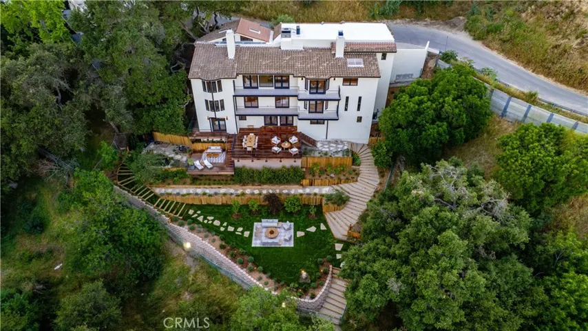 Stunning, remodeled rustic Tuscan home in prime Sherman Oaks, south of the Blvd with views! Surrounded by nature, this home is tucked amongst trees, providing a serene escape. Featuring 5 BR – 5.5 BA in almost 5,000 sqft., totally remodeled with modern touches. Main level features living room with pitched ceiling, fireplace with Portuguese limestone mantle, and adjacent dining room with fireplace travertine stonework, custom built-ins with wine display, and French doors to balcony. Separate office with double height ceilings with wood accent, built-ins, and speakers provides a calming workspace. Gourmet kitchen features rustic brushed oak cabinetry, White Rhino leather finish counters, breakfast area with French doors to balcony, skylight, and Bertazzoni range with double oven. Entire level with end-to-end balcony and stunning views of the Valley and mountains. Spacious primary suite with views, fireplace with Portuguese limestone mantle, large walk-in closet with accent lighting, French doors to balcony, and spacious primary bath with custom tilework and soaking tub with views. Downstairs living room/bonus room with French doors leads to deck and lush backyard. Surrounded by trees, private backyard features resort-like amenities, feeling like a wellness retreat. Deck leads to multiple terraced seating areas with cold plunge, sauna, and tiled patio surrounded by lawn and custom landscaping. Extensive landscape lighting highlights the landscaping and hardscape, and spotlights into canyon highlight the oaks and sycamores in the evening. Home is completed by entertainer/designer details such as Lutron smart lighting, surround sound speakers, custom marble/porcelain/limestone and woodwork, and security system with cameras. With sparkling views of the Valley and mountains, this unique home is a must see!