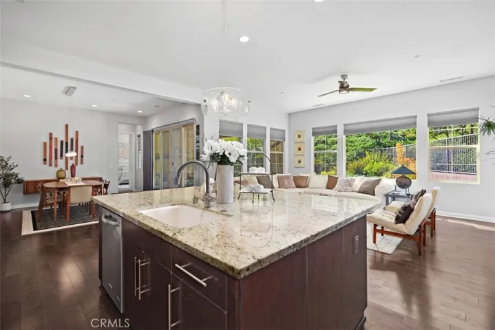 Live your best life in this beautiful light and bright single level home! This two bedroom and two bath plus den (could turn this to a 3rd bedroom) is located in the exclusive gated community of Gavilan-Sendero in Rancho Mission Viejo ( 55+ community). This beautiful home features an open floor plan, chef’s kitchen with top of the line appliances, large kitchen island, exquisite granite counters, wood floors, luxurious primary suite, walk in closet and a large inside laundry room are just a few of the upgrades. Home is situated on a large corner parcel with views of the hills, picturesque garden and an ever so fun putting green. Close to “The Hacienda”, this gated clubhouse offers spaces for serious fun and relaxation. HOA amenities include a collection of indoor/outdoor community facilities set around scenic courtyards with panoramic hillside views, sparkling pools, fitness center, pickleball, and bocce play.