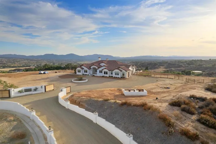 Breathtaking panoramic views, quality finishes, and luxury amenities await at this spectacular 5-acre estate in Temecula Wine Country. Thoughtful details reflect a commitment to exceptional living throughout, from the gourmet kitchen with a 60-inch professional range, dual dishwashers, and built-in espresso machine, to the custom glass wine cellar perfect for displaying your collection. Open the La Cantina doors to expand your living space onto the covered patio, complete with a fireplace and dual infrared heaters for year-round enjoyment. Outside, a shimmering infinity pool, oversized spa, and built-in gas fire pit with seating are all framed by sweeping views of the Temecula Valley. Wake up to hot air balloons overhead and wind down with stunning sunsets every evening. Entertain in cinematic style in the private 4K home theater with a 135-inch Stuart screen and eight power-reclining seats. The attached casita features its own entrance, family room, kitchenette, and bath – ideal for extended family, guests, or rental income. Dual RV hookups and a three-car garage with two EV-ready charging ports round out this one-of-a-kind property. Just minutes from Temecula’s best wineries and not far from top-rated schools, and excellent shopping and dining. This is wine country living at its finest. No HOA. No Mello Roos.