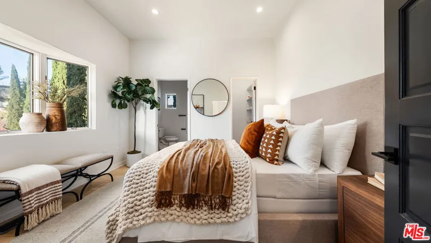 Tucked away in the privacy of Laurel Canyon, this thoughtfully updated contemporary art-deco retreat offers sweeping views of rolling hills and a true sense of calm, all while remaining just minutes from the heart of Los Angeles. Framed by mature cypress trees and filled with natural light, the home feels like a private escape with a strong connection to its canyon setting. The main residence features four bedrooms and four bathrooms with refined finishes and a highly functional layout ideal for both everyday living and entertaining. Two distinct living areas flow seamlessly into a gourmet kitchen, while multiple balconies invite indoor outdoor living and showcase serene canyon views from nearly every angle. The primary suite serves as a private sanctuary with expansive views, custom closets, and a spa inspired bathroom featuring marble finishes, a soaking tub, heated floors, and a glass enclosed shower. Below the main home, a separate one bedroom guest residence offers its own private entrance, full kitchen, in unit laundry, sunroom, and wrap around deck, making it ideal for guests, extended family, or a home office. Outdoor living is exceptional with multiple tiered decks designed for lounging, dining, and entertaining, along with a spa perfect for relaxing day or night. Additional amenities include a two car garage, private carport, ample parking, and a quiet cul de sac location, delivering a rare blend of privacy, comfort, and refined canyon living in one of the most sought after enclaves of the Hollywood Hills.