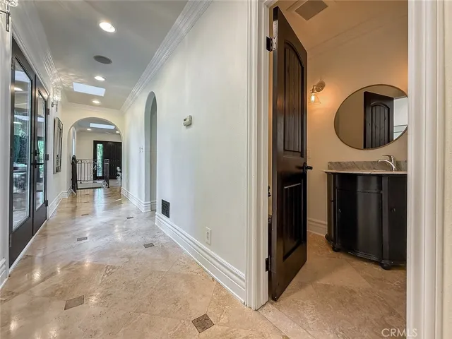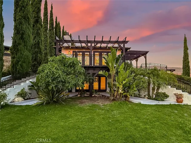 Luxury Live Auction! Bidding to start from $1,700,000! One-of-a-kind Spanish Hacienda estate with sweeping mountain and city views, privately gated and surrounded by mature Mediterranean landscaping on a fully fenced acre. The gourmet kitchen features granite countertops, stainless steel appliances, and a walk in pantry that flows into the dining area and living room with a custom fireplace. Three sets of French doors open to dual patios overlooking the lush grounds and capturing stunning sunrise and sunset views. The spacious primary suite includes dual closets, scenic views, and a spa inspired bathroom with soaking tub, frameless glass shower, and dual sinks. The lower level is designed for entertaining with a large family room, fireplace, full size custom wet bar, and direct access to the backyard. Two additional bedrooms on this level each include private ensuite bathrooms. A rare four car garage with tandem workspace is ideal for car enthusiasts and features an in ground hydraulic lift, compressor, engine hoist, and built in steel cabinetry. Additional upgrades include custom windows and doors, smooth stucco, updated plumbing, and HVAC. Zoned RE20 with space for horses, chickens, and gardening, the property includes a custom chicken coop and plenty of room for farm to table living. Conveniently located near mountain trails, shopping, dining, the 23 and 101 freeways, and Conejo Valley schools!