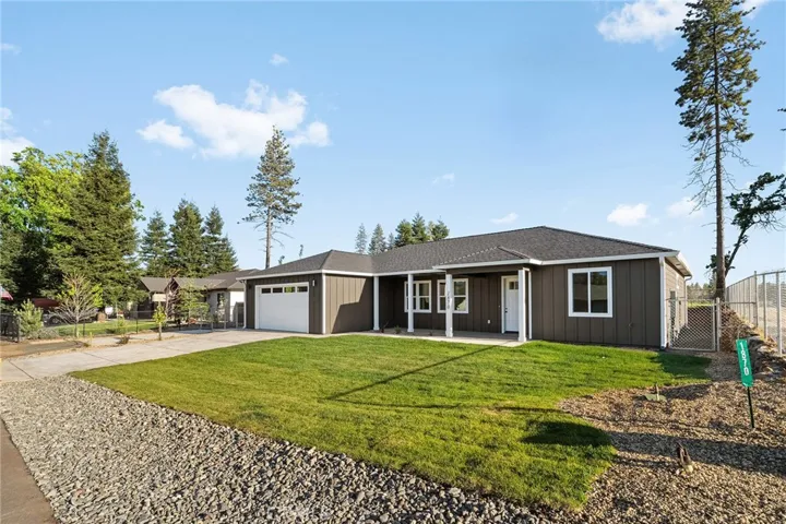 If an accepted offer is in place by Sunday, April 12th at 8:00pm, the builder is offering an EXTENDED 2-year fit & finish warranty—an added layer of peace of mind you won’t want to miss. Located on the desirable east side of Paradise, where Conifer is being beautifully rebuilt, this thoughtfully designed home by American Dream Construction offers comfort, quality, and a layout that truly stands out. Known for their craftsmanship and commitment to the community, American Dream Construction also provides a strong 1-year fit & finish warranty that they stand behind. This floorplan is a favorite, featuring a spacious, open flow that feels both functional and inviting from the moment you walk in. The tray ceiling adds an elevated touch, while abundant windows fill the home with natural light. The kitchen is generously sized with ample workspace and storage, seamlessly connecting to the main living area—perfect for both everyday living and entertaining. On the garage side of the home, you’ll find the primary suite, along with a walk-in pantry and laundry room for added convenience. The split floorplan offers privacy, with two additional rooms on the opposite side—one a true bedroom and the other ideal as an office, den, or bonus space. Both rooms are approximately 13’x14’, offering flexibility without sacrificing space. The primary suite is spacious (approx. 16’x14.5′) and well-appointed, featuring a large walk-in closet, dual vanities, a soaking tub, and a walk-in shower. Built with true wildfire preparedness in mind, this home offers peace of mind with 5 feet of defensible space using non-combustible materials, a Class A fire-rated roof, ember-resistant Vulcan vents, fiber cement siding, and non-combustible gutters and downspouts. Additional upgrades include enclosed eaves and soffits, metal gutter guards, dual-pane tempered windows, and fire-resistant exterior doors—providing a level of safety, quality, and resilience that is hard to find. Step outside to enjoy both a charming covered front patio and a covered back patio—perfect for morning coffee or hosting friends. The fully fenced yard includes RV gate access and parking, with a flat, graded backyard ready for your vision and future landscaping. Conveniently located just down the road from Paradise Ridge Elementary School, only minutes to Lime Saddle Marina at Lake Oroville, and all town amenities—this is a home that offers both lifestyle and location.