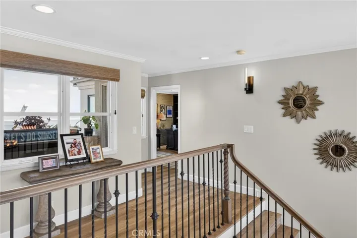 The perfect blend of a beach lifestyle and modern sophistication – this is a unique and rare gem in Hermosa Beach. Perched on an oversized corner lot in the heart of Hermosa Beach, this private coastal villa captures timeless Spanish-inspired architecture through refined design with a curated, modern interior palette. Thoughtful architectural details and warm finishes create an atmosphere that feels both elevated and welcoming. Lush greenery and framed by swaying palm trees, this coastal villa offers the rare combination of resort-inspired living, serenity, thoughtful functionality, privacy, sophistication and timeless appeal. Step through the arched entryway and custom wrought-iron door into a naturally sunlit foyer with soaring ceilings and elegant detailing. The floor plan invites effortless living with multiple indoor-outdoor spaces that capture ocean breezes and golden South Bay natural light. The entry level south wing offers a secluded sanctuary offering a warm stone fireplace, private outdoor veranda and grassy yard, hotel spa inspired bathroom with separate sink counters, primping station, oversized shower and dual closets. The north wing has three additional bedrooms, an en suite with outdoor access to spa and patio. The additional two bedrooms are well appointed with ample closet space and share a dual sink bathroom. This wing enjoys a full kitchen offering convenience and privacy for family members and guests, two car garage, laundry room, tool work area and storage. Retreat upstairs to the heart of the home in the warm family room with walls of windows and views that stretch beyond rooftops and spectacular sunsets, built-ins, a dual-sided fireplace that also accommodates the outdoor TV deck. Bask in the sunroom with a wall of western windows plus interior windows inviting ocean breezes and sunlight. Enjoy the open piano area and formal dining room. Relish cooking and entertaining in your gourmet kitchen that includes a 48” SubZero Pro refrigerator, 48” six burner gas cooktop, colossal island that opens seamlessly to a dining area, perfect for gatherings. Outdoor barbeque and bar or up the stairs to ocean views from the rooftop sky deck. Upstairs is a chic yet functional private and spacious office featuring custom cabinetry and bookshelves. Additional highlights – hardwood-like floors, designer lighting, security system and AC. Multiple flexible living areas and decks provide intimate spaces to unwind or host festivities for all lifestyles.