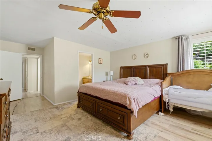 The versatile floor plan continues inside with a convenient downstairs guest wing (bedroom and den), featuring a custom Murphy bed and bookshelf unit. Upstairs, find two spacious secondary bedrooms and a primary retreat boasting “his & hers” walk-in closets and a dedicated sitting area.