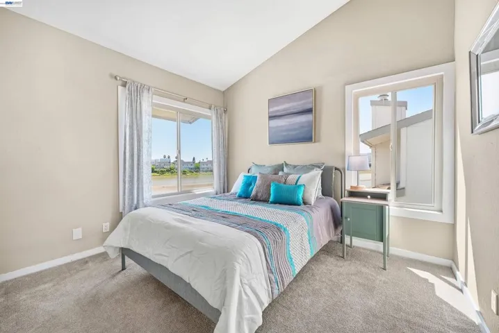 Beautifully updated 3BD/2BA end-unit townhouse offering 1,450 sq ft of modern living in desirable Laguna Vista. A newly painted front deck welcomes you into a thoughtfully designed floor plan. The main level features an updated kitchen with white cabinetry, granite countertops, and stainless-steel appliances, seamlessly connecting to a spacious living and dining area with serene waterfront views. Sliding glass doors open to a large, newly painted deck—perfect for relaxing or entertaining by the lagoon. A cozy living room with fireplace, plus a bedroom and full bath, complete the first floor. Upstairs, two bedrooms boast vaulted ceilings, expansive windows, and tranquil water views, creating a bright and airy ambiance. The primary suite overlooks the lagoon and includes a versatile bonus space ideal for a home office, reading nook, or additional storage. An updated bath with skylights enhances the upper level. Enjoy community amenities including a beautifully maintained garden, sparkling pool, and clubhouse. The 2-car garage features built-in cabinetry for ample storage. Conveniently located near Los Prados Park, Bay Trail, Marina Plaza shopping and dining, with easy access to Hwy 101 & 92. A perfect blend of peaceful waterfront living and everyday convenience in San Mateo!