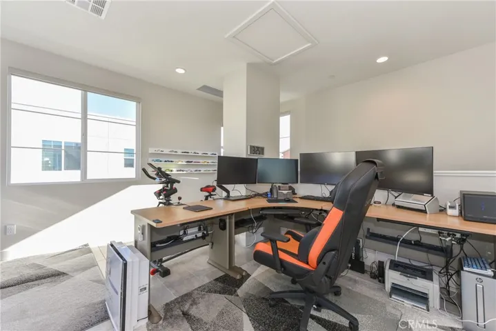 Beautiful single-family detached home located in the highly desirable Novel Park community of Great Park Neighborhoods. This light-filled residence offers 4 bedrooms and 3 bathrooms, featuring an open-concept floor plan with high ceilings and abundant natural light throughout. The upgraded kitchen showcases designer countertops and backsplash, stainless steel appliances, and seamlessly opens to the main living area perfect for both everyday living and entertaining. The interior highlights include recessed lighting, plantation shutters, upgraded tile and carpet flooring, and a modern upgraded fan system. The home is equipped with an energy-efficient HVAC system and a keyless entry front door for added convenience. A versatile bonus room and spacious covered deck on the third floor provide additional space for relaxing or entertaining. Additional features include a 2-car garage with direct interior access. This home is ideally located near award-winning schools, Woodbury Town Center, Irvine Spectrum, and major freeways. As a resident of Great Park, you enjoy resort-style amenities, including clubhouses, heated pools and spas, scenic walking paths, parks, sports courts, playgrounds, picnic areas, and more.