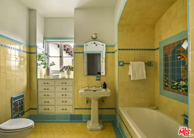 Introducing The Clifford Clinton Residence (HCM 997), a landmark 1928 Spanish Colonial Revival designed by renowned architect Arthur W. Larson and once home to Clifford Clinton, founder of the iconic Clifton’s Cafeteria. Set behind an impressive 230-foot gated and hedged frontage in the heart of Los Feliz, this storied estate offers exceptional privacy and a dramatic sense of arrival.Rich in original architectural character, the residence showcases Juliette balconies, decorative ironwork, artisan stained glass, magnesite floors, peg-and-groove hardwood, and expansive tiled patios and courtyards that capture the romance of classic Southern California Spanish design. A grand two-story entry stairwell leads to beautifully scaled public rooms including a step-down living room with coffered ceilings and massive fireplace, a baronial dining room with stained glass picture window, and a charming kitchen and butler’s pantry highlighted by rare robin’s egg blue original tile and vintage fixtures. A stately office with hand-stenciled ceilings and fireplace sits privately off the main staircase.The second level features four generous bedroom suites, each with colorful period tile baths and ornate plaster detailing, along with balconies and a sunroom overlooking palm-lined city views. The lower level offers additional entertaining space including a screening room, cocktail lounge, and billiard room.In 1936, Clinton added the tiled Deco pool, sun deck, and bathhouse, creating a sun-filled outdoor retreat that remains a central gathering place today. A grassy knoll and shaded dining pavilion complement the entertaining grounds, while a separate gated driveway leads to a motor court, three-car garage, and additional parking.Lovingly restored over the past decade and benefiting from Mills Act tax incentives, this over 6,000-square-foot estate with six bedrooms represents a rare opportunity to own one of Los Feliz’s most historic and romantic residencesan extraordinary legacy property from the neighborhood’s golden era.