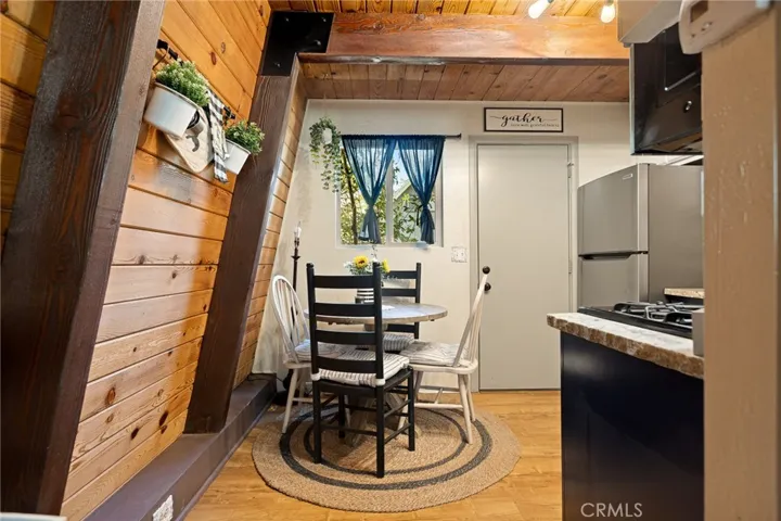 Escape to the mountains in this charming gambrel barn-style home, partially furnished and move-in ready. This cozy 2-bedroom, 1-bath retreat features a stone wood-burning fireplace, an upgraded kitchen with rugged granite countertops, newer stainless steel appliances, and farmhouse-modern touches.