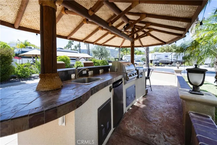 One of the best waterfall and golf course views in the resort! This exceptional waterfront property offers stunning scenery overlooking the pond, waterfall, and golf course, with beautiful sunrise views and a front-row seat to watch early morning golfers on hole #10 green. Enjoy outdoor living at its finest with a fully screened-in, shaded casita build-out—perfect for relaxing in comfort year-round. A second shaded entertaining area features a built-in BBQ, cooktop, refrigerator, and a spacious island, creating an ideal setup for hosting family and friends. The layout offers generous space for entertaining while taking full advantage of the incredible views. This lot includes full RV hookups and is conveniently located near Pool #5, the bathhouse, laundry facilities, and the main clubhouse for easy access to resort amenities. Located within Rancho California RV Resort, a gated and 24/7 guard-controlled community offering resort-style amenities including a 14-hole executive golf course (free for owners with unlimited use), 5 pools and multiple jacuzzi areas, tennis courts, pickleball courts, dog park, horseshoe lawn, laundry facilities, hiking trails, clubhouse, on-site restaurant, and market. HOA includes water, sewer, trash, and common area maintenance. Bring your Class A, Super C, or 5th wheel and experience resort-style living at Site 516—an outstanding opportunity to own one of the most desirable waterfront view properties in Rancho California RV Resort. Financing available.