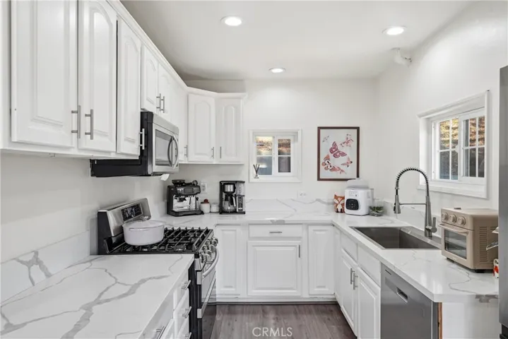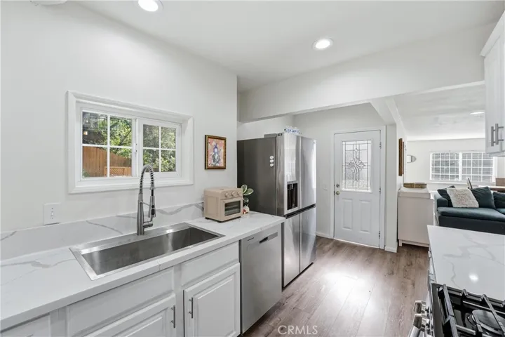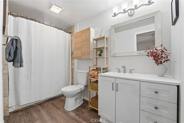 Discover a fantastic opportunity to own a charming home tucked away in the desirable Sleepy Hollow area of Chino Hills. As you step inside, you’re welcomed into a bright and inviting great room that seamlessly combines the living and dining areas—perfect for both relaxing and entertaining. A wall of windows along the east side fills the space with natural light, creating a warm and airy atmosphere. Beautiful laminate hardwood flooring runs throughout the main level, adding both style and durability. The kitchen, thoughtfully situated at the rear of the home, features quartz countertops, shaker-style cabinetry and stainless steel appliances—ideal for any home chef. The primary bedroom is conveniently located on the first floor and offers a walk-in closet along with a fully remodeled bathroom. Downstairs, the second bedroom spans the entire lower level, complete with plush carpeting and its own remodeled ensuite half bathroom, providing privacy and flexibility. Step outside to enjoy multiple deck areas designed for entertaining, all while taking in stunning canyon views. The home’s location offers easy access to Orange County, nearby shopping and retail, and is part of an exceptional school district.