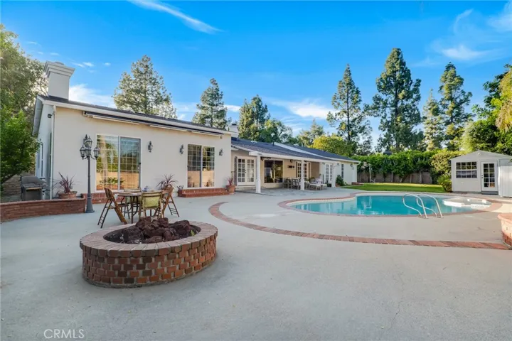Welcome to 10238 Tunney Ave, nestled in the highly sought-after Devonshire Country Estates, the land of large lots and gorgeous custom homes. This beautifully upgraded 5-bedroom, 4-bathroom residence offers approximately 3,141 sq ft of living space on an expansive 17,200 sq ft lot.From the moment you arrive, the home captivates with exceptional curb appeal and a grand circular driveway, setting the tone for what awaits inside. Volume ceilings and abundant natural light highlight the recently remodeled interior, where modern design meets everyday comfort.The open great room concept floor plan is perfect for both entertaining and daily living, seamlessly connecting the kitchen, dining, and living areas. French door galore, masterpiece floor to ceiling fireplace with raised hearth is spectacular. Spacious interiors are complemented by thoughtful upgrades and refined finishes throughout. A chef’s inspired kitchen with oodles of counter space, large walk in pantry and gorgeous cabinetry. This open layout is perfect for entertaining, the adjacent dining room and family room make for great memory making space. A great view of the front yard too!Four bedrooms – 2 bathrooms on one side, and the 5th bedroom and full bath on the opposite side of the house are perfect for visiting friends or home office.  Step outside to your private backyard retreat—complete with a sparkling pool and spa inviting firepit area, and lush grassy space—ideal for entertaining or enjoying Southern California living year-round. Large covered patio and extendable awnings compliment this outdoor oasis,Recent upgrades include a full roof replacement with composite shingles, remodeled kitchen and primary bathroom, luxury vinyl plank flooring throughout, renovated fireplace, interior and exterior repaint, upgraded electrical panel, new water heater, pool resurfacing with new plaster and tile, and improved attic insulation. This is a rare opportunity to own a turnkey home with extensive upgrades, generous living space, and resort-style grounds in one of Northridge’s premier neighborhoods.