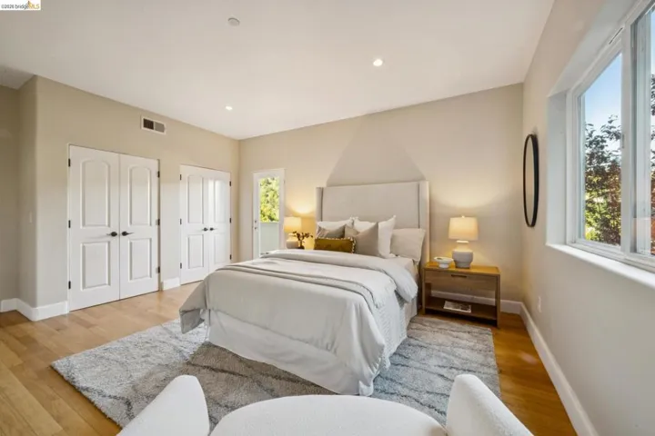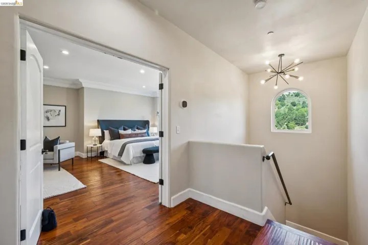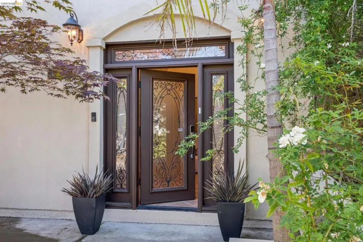Newer Mediterranean-style luxury home in the Oakland Hills with serene hillside views. This spacious residence offers 6 bedrooms and 4.5 baths, including a private en-suite ideal for au pair, guests, or extended family. A grand entry with soaring ceilings and sweeping staircase sets the tone, with elevator access to multiple levels. The main level features a dramatic living room with fireplace and Juliet balcony. A formal dining room overlooks living room. Open-concept chef’s kitchen with island, pantry, and breakfast area, flowing into a second family room. The primary suite is a private retreat with a sitting area, fireplace, hillside views, dual walk-in closets, and a spa-like bath with sunken tub and garden access. Two additional bedrooms are on the same level, plus a large laundry room and bonus spaces for office or gym. A tropical-inspired backyard includes a fountain, multiple seating areas, and a custom outdoor kitchen. Hardwood floors, custom lighting, and an attached two-car garage with elevator access, Tesla charging, and storage complete this exceptional home. Close to all major transportation, shopping and schools.