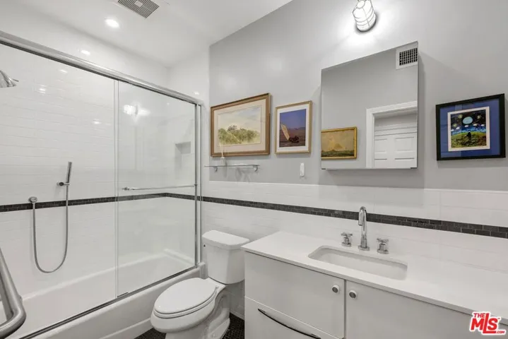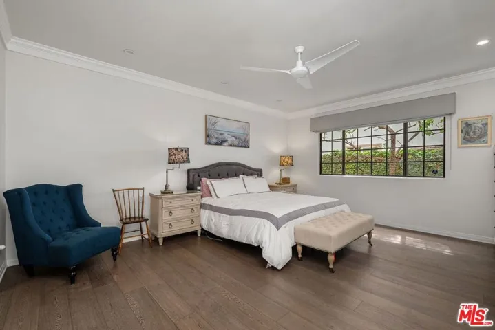 Discover this spacious, single-level home in the heart of Brentwood . . This 2 (+ 3rd bed / office – with closet) bedroom, 2.5 bath, 2300+/- sq foot corner unit boasts generous room sizes, custom Roman Shades, nearly 9-foot ceilings, wide-plank, wood floors and dimmable recessed lighting throughout. . . just steps to the many shops & restaurants of Brentwood Village. Come in through the elegant double-door entry. Everything in this unit is on a grand scale and feels like a single family home. The enormous living/country dining room has a working fireplace, plenty of room for a grand piano and opens to a spacious, private patio (with brand new flooring) with lots of room for several seating areas. The extra-large cooks kitchen features glass-front cabinetry, a breakfast bar, built-in wine rack, stainless appliances (including an LG ThinQ smart refrigerator and LG dishwasher, new circa 2023), farmhouse double sink, center island, windows facing two directions, under-cabinet lighting and seeming endless storage. Huge primary suite includes a ceiling fan, custom closet with jewelry drawers. Sumptuous bath with dual sinks, a separate soaking tub with wide surround (perfect for candles) & over-size, frameless shower enclosure with body-washer. Good size secondary bedroom with an entire wall of closets. Third bedroom/office with built-ins and closet. Good size laundry room with generous storage and shelving. Huge linen closet in hallway. This building was built as condos. Building garage is at street level. No stairs from garage to elevator to unit floor . . . . Please see “Doc(s)” link (above) for additional HOA information. Please see the “Virtual Tour” link (above) for the self-directed, 3-D virtual tour.