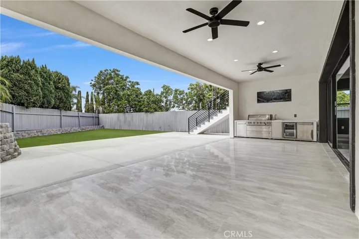 Slide open the expansive glass doors and step into your California Room—designed for seamless indoor-outdoor living. The fully equipped outdoor kitchen includes a stainless steel built-in BBQ, mini refrigerator, sink, burner, and abundant storage—perfect for entertaining year-round. The backyard is both lush and low-maintenance, featuring artificial turf and tropical landscaping that creates your own private retreat.
