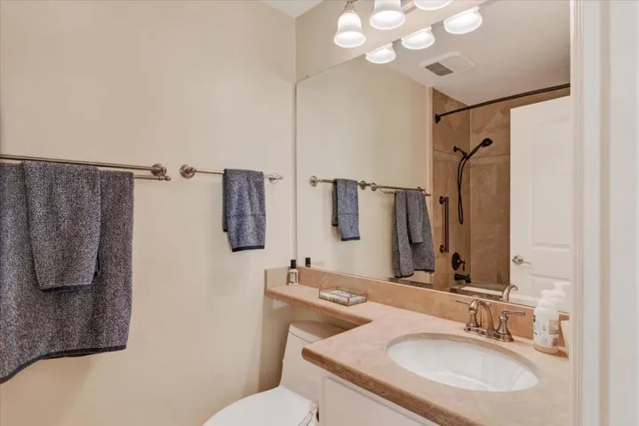 Perfection!! End unit in The Villages! Beautifully updated throughout, including new wide-plank flooring, custom electric solar shades, shutters and blinds, recessed lighting, custom paint, elegant crown molding, appliances, granite countertops, closet organizers, ceiling fans, garage floor and cabinets and electric fireplace. The primary suite boasts a tiled walk-in shower, dual sinks, walk-in closet. Open-concept layout with the kitchen flowing seamlessly into the family room, dual-pane windows and doors flooding the space with natural light. 3rd bedroom opens to living room is great office space. View decks and the gated entry courtyard is perfect for entertaining or simply enjoying the California sunshine. This ground-level condo includes an attached garage and an assigned covered carport for ultimate convenience.The Villages isnt just a place to live, its a lifestyle. Residents access world-class amenities, including golf, tennis, swimming, bocce, a fully equipped gym, hiking trails, on-site restaurants, a post office, and a plethora of group activities and functions. Designed exclusively for the 55+ lifestyle, this serene oasis is nestled in the picturesque foothills of Evergreen Valley, offering a vibrant blend of outdoor activities and a warm, welcoming community.