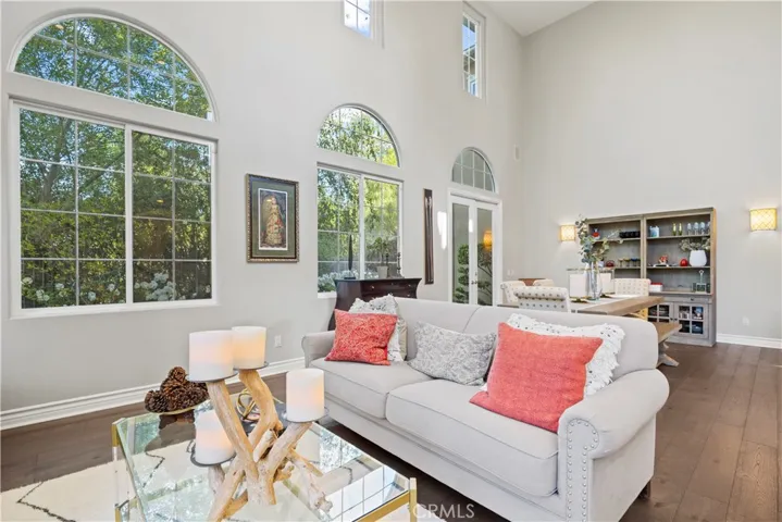 Introducing Taylor Woodrow’s Presidio Plan 2. This gorgeous home is nestled in the prestigious guard-gated Woodlands community of Valencia. It is located at the end of the street. Very private, and one of the few homes with only one neighbor. The plan includes a great room/formal dining room and living room combination with soaring ceilings and fireplace. One downstairs bedroom with a private on-suite bath. The kitchen includes maple cabinets, granite countertops, 6-burner Viking cooktop, built-in refrigerator, stainless steel appliances, new double oven, round breakfast room with built-in niche, overlooking entry courtyard with custom wrought iron entry gate. French doors & grand staircase. Each bedroom suite is complete with its own private bathroom, large master suite with tub and master bath. Newer tankless water heater, three car garage with cabinetry. The third car garage can easily be converted into additional guest space, office or workout room. Pool size grass yard, patio, built in Viking Barbecue and beautiful landscaping. In addition, enjoy city views & sunrises from the master bedroom & stunning sunsets from the front balcony! Amenities include community resort style junior olympic pool, spa, fireplace, bbq, tennis/pickle ball & basketball court, tot lot, all steps away from this incredible home. Trails & more! The Woodlands is located in the heart of Valencia. Minutes away (a nice stroll) from Valencia Town Center’s shops, entertainment & dining! This is the one! NO MELLO ROOS!