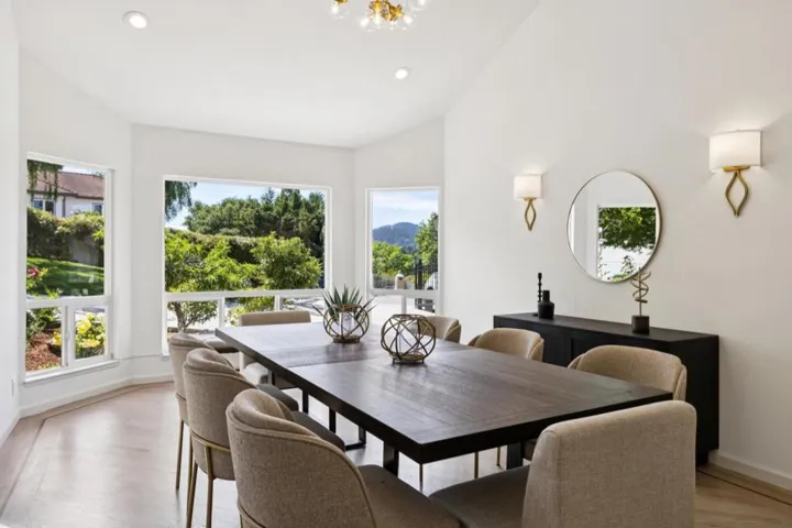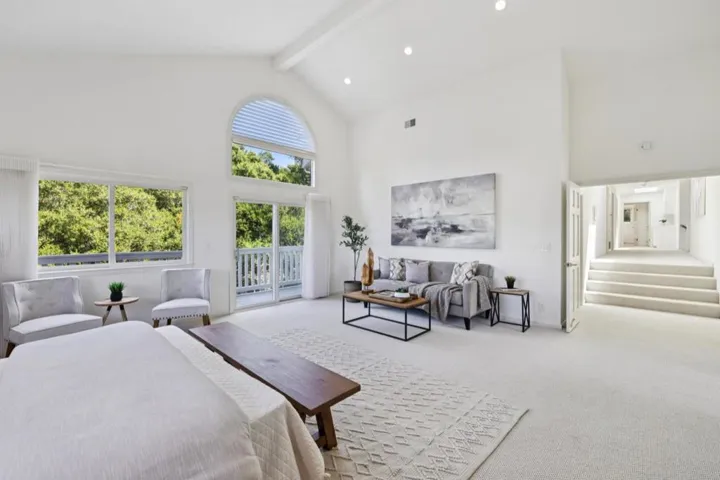 Privately set on a serene cul-de-sac, this gated estate is a refined expression of scale, light, and California indoor-outdoor living. A circular drive introduces a grand entry and sweeping staircase, with soaring ceilings elevating the formal living and dining spaces. At the heart of the home, a crisp white chefs kitchen flows effortlessly into the family room and out to curated gardens and expansive decks, mature trees, and a grassy play space, designed for effortless entertaining. Each of the 4 upstairs bedrooms opens to a balcony, while the primary suite unfolds as a true retreat complete with wraparound canyon views, a dressing area, and a spa-inspired bath. Don’t miss this rare offering defined by privacy, elegance, and award-winning Hillsborough schools.
