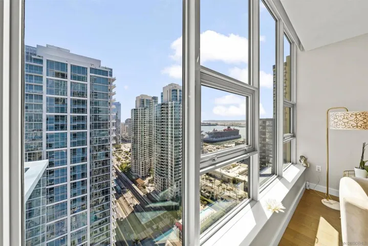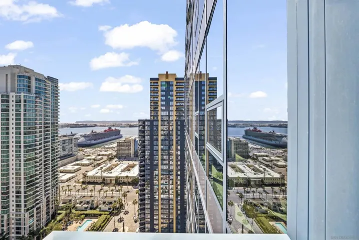 Welcome to Savina #2706, where modern luxury meets coastal urban living in San Diego’s premier high-rise community. This exquisite south-facing condo offers awe-inspiring views of the shimmering Bay and Downtown skyline. Bathed in natural light, the residence boasts soaring ceilings and an open floor plan. The modern kitchen is both functional and stylish, featuring ample storage and Thermador appliances. Elevate your living experience with thoughtful upgrades including Lutron automatic shades, custom lighting, designer paint, ceiling fans, a beautifully crafted custom walk-in closet in the primary suite, and a dedicated EV charger in the underground parking space. Savina features over 24,000 SqFt of resort-style amenities, offering a pool and spa, a state-of-the-art fitness center, a yoga deck, social lounge, busines center, outdoor dog relief area, dog grooming room, 24/7 building staff, and wifi included in HOA dues. Located between vibrant Little Italy and the waterfront, residents enjoy proximity to top-rated restaurants, shops, and entertainment venues. Embrace the best of high-rise living at Savina!