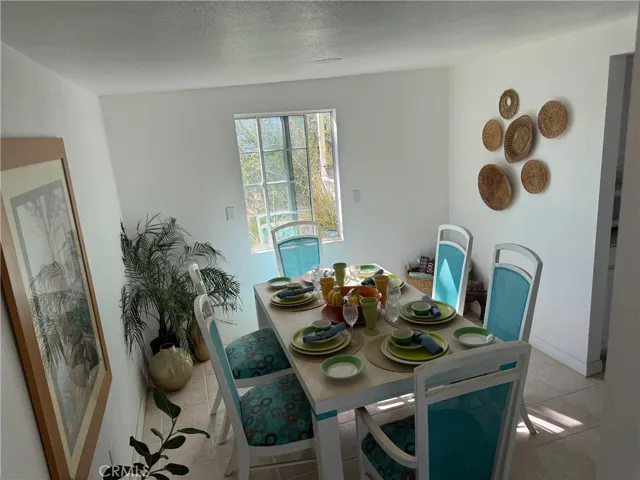 Inside, the home features a bright and open living space highlighted by vaulted, beamed ceilings, tile flooring throughout, and updated windows that bring in plenty of natural light. The kitchen is well-equipped and includes a casual dining nook with sliding glass doors leading to the backyard, along with a separate dining area ideal for entertaining or flexible use. The spacious bathroom includes a tub and shower combination. One bedroom offers built-in storage and comfortable proportions, while the second bedroom is notably large, filled with natural light, and includes a generous closet. An additional bonus room provides extra space suitable for a home office, creative studio, or guest accommodations. This home is ready for immediate enjoyment. With its well-designed layout, recent improvements, and inviting outdoor spaces, this property presents a fantastic opportunity in a sought-after Yucca Valley location. Come tour this property today!