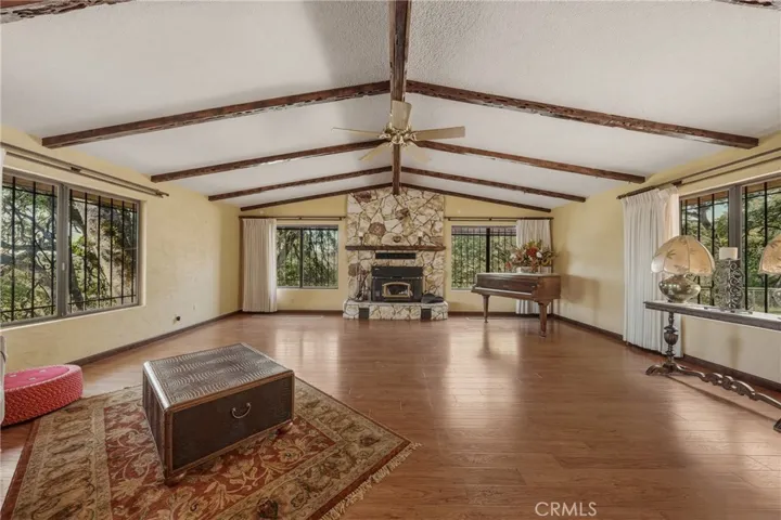 Escape to your own private oasis nestled on over five acres of scenic, fenced and cross-fenced land. This unique Spanish-inspired home welcomes you through an electric solar gate and along a lovely paved driveway, leading to a peaceful retreat designed for comfort, creativity, and country living.