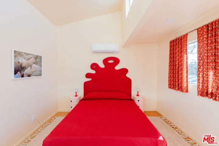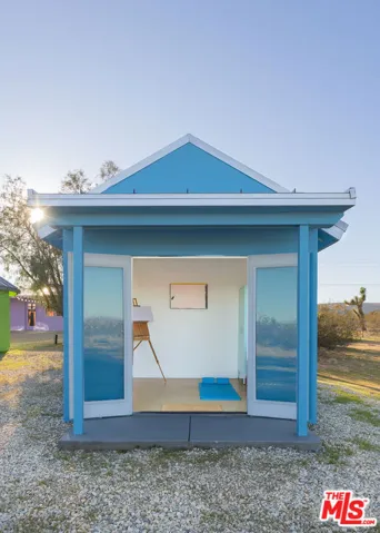 Lavender Ranch isn’t just a home, it’s a work of art. Featured in Elle Decor, Dwell, and Design Milk, this fully reimagined 1957 desert compound has already captured the world’s attention. With a profile this established, the possibilities are extraordinary: short-term rental, private desert retreat, creative compound. Set on 1.82 acres in Yucca Valley, the property comprises four distinct structures: a 1BD/1BA lavender-hued main house with bonus room (optional 2nd BD), a newly built permitted ADU “The Bunkhouse” with 1BA, kitchenette, vaulted ceilings, and private patio, plus two additional studios that elevate the compound’s appeal and support a higher nightly rate – one a cloud mural-wrapped office, the other a sky-blue creative studio that opens directly onto the desert landscape. The compound was meticulously re-envisioned by LA interior and furniture designer Another Human, rebuilt from the studs with new plumbing, electrical, insulation, windows, doors, stucco, and standing-seam metal roofs throughout. Interiors feature custom cabinetry, cork flooring, all-dimmable restored vintage and designer lighting, and a restored vintage Malm gas-burning fireplace. The main house kitchen is anchored by Bertazzoni, Bosch, and Summit appliances with Cambria quartz counters. The primary bath features a Peter Shire toilet seat and custom pulls by Chen Chen & Kai Williams. The 2025-converted ADU adds porcelain Daltile, a marble vanity, and an independent new septic system. Outdoors, native Joshua Trees, Yucca, and San Pedro cactus frame Ipe wood decking, a cowboy tub, new Jacuzzi hot tub, and an original outdoor hearth – a sculptural desert landscape built for entertaining under the stars. Systems upgrades include new fiber internet, mini-splits, updated foundation and footings, a new Rheem water heater, and new GE washer/dryer. Available furnished for an additional fee, including custom pieces by Another Human. Located minutes from Joshua Tree National Park, Pioneertown’s Pappy & Harriet’s, Mojave Gold, and the high desert’s growing collection of celebrated restaurants and design-forward shops, Lavender Ranch sits at the center of it all. Measurements (buyer to verify) are approximately: main house 1,036 sq ft + 207 sq ft ADU “The Bunkhouse” + green studio 120 sq ft + art studio 100 sq ft.