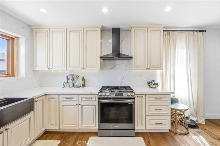 Tucked into a pride-of-ownership neighborhood in Whittier, this 4-bedroom, 2-bath home blends classic charm with thoughtful modern upgrades. Inside, you’ll find beautifully updated flooring, a bright open layout, and a striking fireplace that anchors the main living space. The remodeled kitchen stands out with custom cabinetry, sleek countertops, stainless steel appliances, and a built-in wine fridge—perfect for both everyday living and entertaining. The bathrooms have been tastefully upgraded, including a designer-style shower in the primary bath that adds a high-end feel. Natural light fills the home, highlighting the clean finishes and comfortable flow throughout. Step outside to a private backyard designed for relaxation, complete with a covered patio, string lighting, and plenty of space to unwind or host gatherings. The detached two-car garage is set toward the rear of the property, offering added privacy and flexibility. Located near award-winning schools including Laurel Elementary, East Whittier Middle, and California High School, and just minutes from shopping, dining, and commuter routes, this home offers both style and convenience in a highly desirable location.