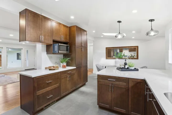 Step into timeless design and modern luxury in this immaculate mid-century modern home, fully permitted and remodeled to the studs in 2021. Offers a 3BD/2BA main home (approx. 1,399 Sq. Ft.) plus an attached approx. 409 Sq. Ft. ADU with separate address (3066 Atherton), private entry, and its own meter ideal for extended living or rental income. Stylish upgrades include Spanish tile, porcelain countertops, custom maple cabinetry with Blum soft-close, Hansgrohe fixtures, Bosch appliances (incl. gas range), and wide-plank amendoim hardwood floors. Major systems updated: roof, insulation, HVAC, and skylights. Features 200-amp service, EV readiness, on-demand hot water, insulated garage, Ethernet wiring, security system, and fresh exterior paint. Enjoy mature landscaping, fruit trees, a private paver patio, and a bright open layout with abundant natural light. Prime location with Cupertino schools, low Santa Clara utilities, and easy access to Apple, Nvidia, Kaiser, and Levis Stadium. An exceptional blend of quality, location, and style.