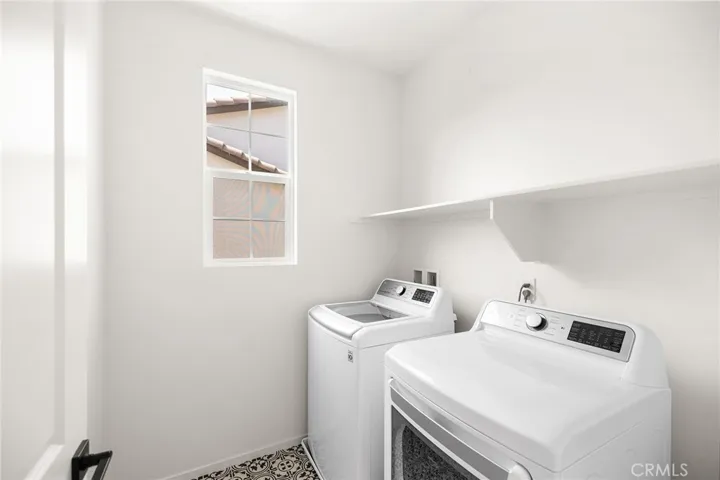 Upstairs the primary bedroom features an ensuite balcony, luxurious bathroom with barndoor style entry and a generous walk-in closet. The dedicated laundry room is conveniently located upstairs with premium Samsung washer and dryer are included. Outside the wrap-around patio is great for fresco dining, Two car attached garage, energy efficient tankless water heater, solar lease and smart home features.