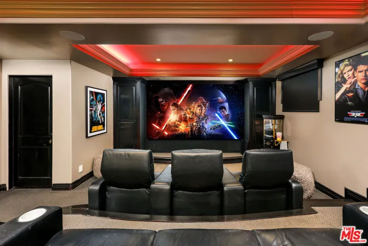Perched high in the exclusive Portafina enclave of South Laguna Beach, this exceptional Mediterranean / Spanish residence captures sweeping views of the Pacific Ocean, Catalina Island, and breathtaking sunsets. Known for its privacy, custom estates, and proximity to Victoria Beach, this coveted hillside community offers a rare blend of serenity and coastal convenience. A gated courtyard with a tranquil fountain sets the tone, welcoming you into light-filled interiors where walls of glass frame the dramatic coastline beyond. Thoughtfully reimagined, the home showcases wide-plank 8″ maple flooring, refined designer finishes, Restoration Hardware lighting, and a striking custom stair railing. At the heart of the home, the chef’s kitchen is both elegant and functional, featuring quartz slab countertops, custom cabinetry, Kohler fixtures, and a premium Thermador stainless steel refrigerator. The primary suite is a private retreat, complete with a cozy fireplace, its own ocean view terrace, and a spa-inspired bath with a jetted tub, walk-in shower, dual vanities, and an expansive walk-in closet. Three additional bedrooms offer beautifully remodeled baths, while a versatile bonus space functions perfectly as a den, office, or gym. Designed for elevated living and entertaining, the home also features a private theater with premium projection, immersive surround sound, and reclining seating ideal for movie nights, game days, and hosting guests. Seamless indoor-outdoor living unfolds into a resort-style backyard, where a pool, waterfall, spa, and fully equipped outdoor kitchen are set against a stunning ocean backdrop. Additional highlights include a three-car garage with epoxy flooring, a sleek trackless door system, and abundant built-in storage offering exceptional space for organization, recreational gear, and everyday convenience. Ideally located near Moulton Meadows Park and just minutes from Laguna Beach’s renowned dining, galleries, boutiques, and beaches, this residence offers an exceptional blend of luxury, privacy, and refined coastal living. Offered fully furnished, with gardener and pool service prepaid through December.