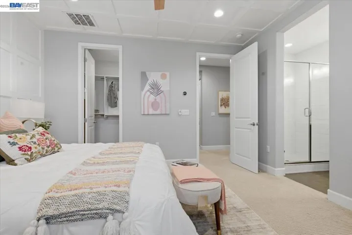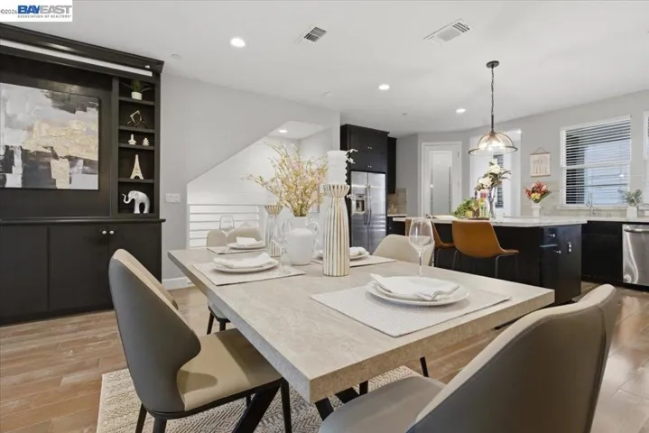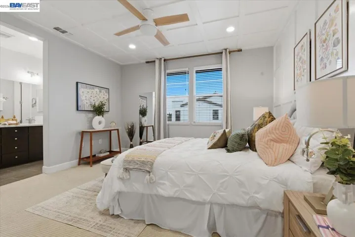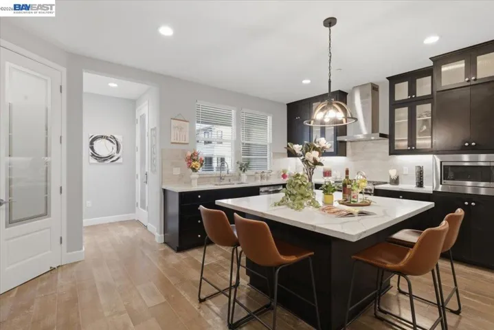 First time on market! Stunning Nuvera MODEL home built in 2021 in Fremont’s desirable Parkmont neighborhood. Northwest-facing end unit with 4 beds and 3.5 baths, featuring $200K+ in upgrades, high ceilings, and abundant natural light. Open-concept layout with spacious living/dining area and a chef’s kitchen with quartz countertops, large island, and stainless steel appliances. Private balcony extends living space. Flexible floor plan includes a first-floor en-suite bedroom—ideal for guests, office, or rental. Expansive primary suite with walk-in closet and dual vanity bath. Includes owned solar, whole-house water softener, triple-zone HVAC with smart thermostats, tankless water heater, hardwood floors, and top-floor laundry. Community offers BBQ area and ample parking. Prime location near BART, Amtrak, Whole Foods, dining, Quarry Lakes, and top schools with easy access to Hwy 880/84. Great opportunity for homeowners or investors.