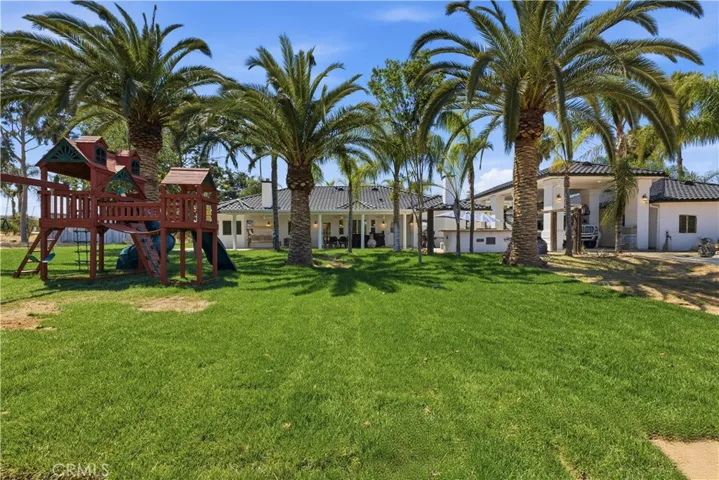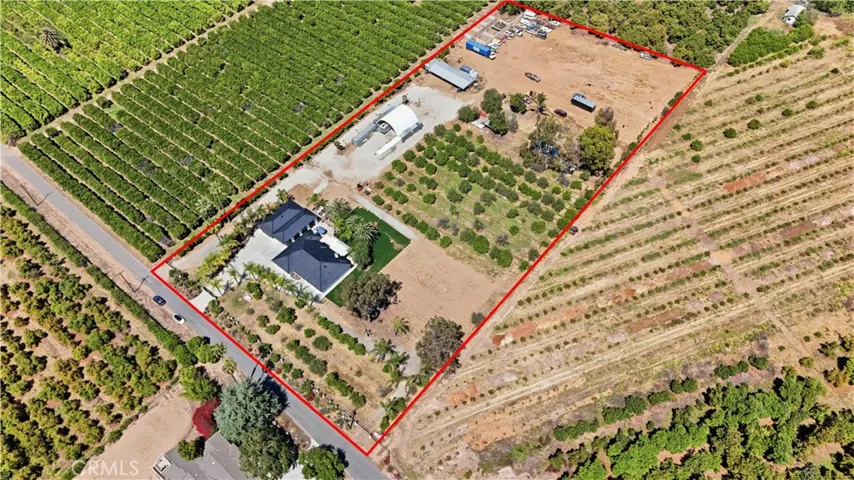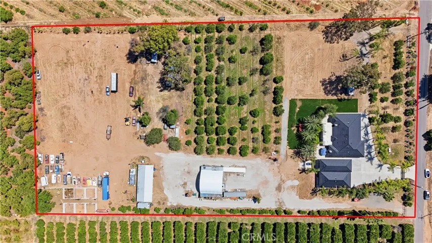 Modern Mediterranean home on approximately 5.1 acres in Arlington Heights. Located on a quiet street with three separate entrances, this property offers both residential and agricultural use, creating an ideal ranch-style living environment. It includes 10 shares of the Gage Canal, established orange groves, and a barn stable. Inside, the home features vaulted ceilings, an open floor plan, high-end finishes, Viking kitchen appliances, custom bathroom designs, and wide-plank oak flooring throughout the 4 bedrooms. Additional highlights include 3 beautifully tiled bathrooms, a dedicated laundry room, a huge carport, a massive canopy, and an additional garage with over 1,300 sq ft of storage plus a bonus room—both garages have epoxy-coated floors. The property is fully fenced with RV parking, an irrigation system, and a yard enhanced by beautiful palm trees. The upgraded backyard provides a unique outdoor retreat perfect for relaxing or entertaining. Located near the Historic California State Citrus Park.