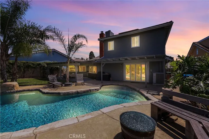 Welcome to this stunning two-story residence in the highly sought-after community of Tustin near Tustin Ranch, offering approx. 3,100 sqft of thoughtfully designed living space. This exceptional home features 5 bedrooms and 4 bathrooms with a large tropical backyard. The home includes dual master suites. One currently set up as a private rental unit – ideal for multi-generational living or income potential. Upstairs, generously sized bedrooms complement a luxurious primary suite complete with a cozy fireplace, spa-inspired soaking tub, walk-in shower, and expansive walk-in closet. The airy open-concept layout seamlessly connects the kitchen, living room, and family room, creating a refined setting for everyday comfort and elegant entertaining. Step outside to a private resort-style backyard featuring a sparking pool with built-in slide, extra large spa, lush landscaping, and ambient lighting. A spacious outdoor island with a built-in grill and burner makes alfresco dining effortless, while the covered patio with fireplace sets the stage for year-round gathering and enjoying the California sunshine. Additional highlights include a renovated two-car garage, newer roof with paid-off solar, newly redone upstairs secondary bathroom, and fresh interior paint. Ideally situated near top-rated schools including the highly ranked Arnold O. Beckman High School, and within walking distance to Tustin Memorial Academy, award-winning parks, and the Tustin Ranch Golf Club. Enjoy close proximity to premier dining and shopping at The Tustin Marketplace and The District at Tustin Legacy, with convenient access to Peter’s Canyon nature preserve, the 241 Toll Road and I-5 Freeway. Experience the perfect blend of comfort, convenience and California luxury living!