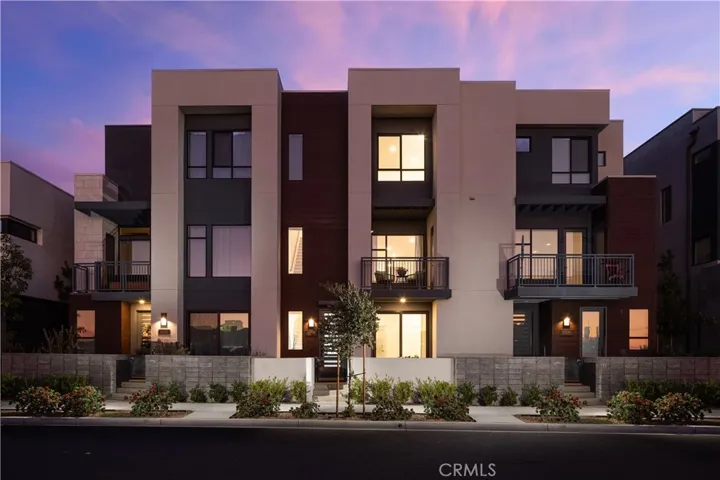 This newly built luxury townhome in The Landing at Tustin Legacy offers the perfect blend of modern sophistication and everyday convenience in one of Orange County’s most desirable new communities. Completed in 2023, this light-filled contemporary home welcomes you with an open-concept layout featuring soaring 12-foot ceilings, imported Italian stone floors, and sleek matte black designer finishes that create an atmosphere of understated elegance. Enter the 3-story plan through the thoughtfully designed lower level that includes an ensuite bedroom (or optional office or fitness room) and direct access to the two-car garage. This space also opens directly to a sunny patio, bringing the outdoors in and making for a welcoming curb appeal. Large windows fill the second-level great room with natural light, creating an ideal environment for both entertaining guests and everyday relaxation. The living room flows seamlessly to a private balcony, extending your living area outdoors. The luxe chef’s kitchen is finished with full-height maple cabinetry, a complete stainless steel JennAir/KitchenAid appliance suite, and a striking quartz island ready for casual bites and conversation. Upstairs, two generously sized bedrooms each provide ample accommodation with large windows and spacious closets. The primary suite serves as a true retreat, with two walk-in closets featuring professional organizers and a spa-like bathroom with double sink vanity and oversized shower. Modern convenience is built-in, with smart features including paid solar panels, an EV charger, Google Home smart system, instant hot water system, and SpringWell whole-home water filtration system. This property’s excellent location within The Landing community provides views of Disneyland fireworks displays and John Wayne Airport, while being within the boundaries of top-rated Tustin Unified schools. All within walking distance of The District shopping center and entertainment, local parks, and a diverse array of restaurants, creating a lifestyle where luxury living meets unmatched convenience in the exciting heart of Tustin Legacy.