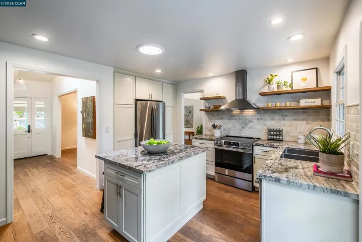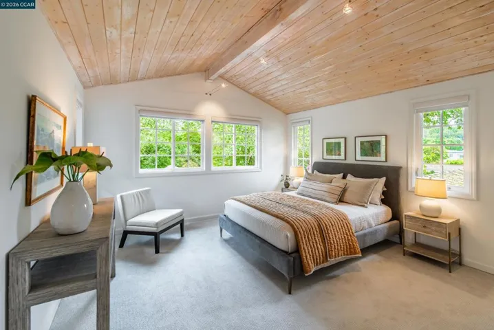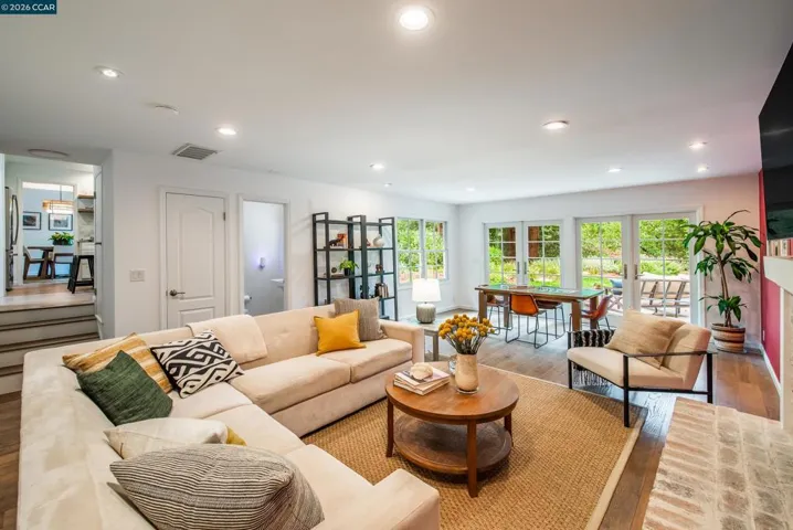 Open Sat & Sun 1-4! Tucked at the end of a quiet cul-de-sac in Lafayette’s sought-after Trails neighborhood, this beautifully updated home offers an exceptional blend of privacy, convenience, and a serene creekside setting. Ideally located near top-rated Lafayette schools, the Lafayette-Moraga Trail, vibrant downtown shops and dining, and BART (approximately 0.25 miles), the location supports both an active lifestyle and everyday ease. Inside, warm wood floors span the main level, setting the tone for a light-filled and inviting interior. A dramatic vaulted living room creates an airy sense of volume and flows seamlessly into the formal dining area, where French doors open to the gardens, perfect for effortless indoor-outdoor entertaining. The updated kitchen is both stylish and functional, featuring granite countertops, stainless steel appliances, abundant prep space, and floor-to-ceiling cabinetry that offers generous storage. Just beyond, the spacious family room with a cozy fireplace provides a comfortable gathering space for everyday living, movie nights, or hosting guests, with a conveniently located powder bath. Upstairs, the private bedroom wing is filled with natural light. The primary suite serves as a peaceful retreat, complete with a spacious closet and an updated en suite bath. Secondary bedrooms are well-sized and share a beautifully updated hall bathroom, offering comfort and versatility for family, guests, or a home office. The backyard offers a beautiful park-like setting, an inviting outdoor sanctuary designed for both relaxation and entertaining. Multiple seating areas, a lush lawn, and mature landscaping create a sense of tranquility, while towering redwood trees and a picturesque creekside backdrop provide natural beauty and privacy. Whether enjoying a quiet morning coffee, hosting gatherings, or simply unwinding at the end of the day, this outdoor space feels like a private retreat. With its ideal location, thoughtful updates, and enchanting setting, 860 Paradise Court presents a rare opportunity to enjoy the best of Lafayette living.